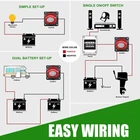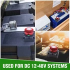 Specifications: Selector Position: ON - OFF Voltage: 0V - 60V DC Rating: 275 Amps Continuous, 1250 Amps Intermittent Base: 2.85" x 2.85" (72.5mm x 72.5mm) Height: 2.90" (73.5mm) Terminal studs: 10mm diameter. Features: - Easy to install - Comprehensive wiring diagram and installation. - Ignition protected - Safe for installation aboard gasoline powered boats or vehicles. - Make before break contact design allows switching between battery banks without power interruption. - Offers a simple economic way of separating battery. - Heavy-duty design, High-quality. - Widely used for Car, Marine, Boat, RV, Camper, Truck, ATV, UTV, Battery banks and other 0-60V Devices. Package include: 1 x Battery Switch 4 x Side Pads 4 x Mounting Bolts Description: 1. ABS plastic housing, durable made for safety use. 2. Rear cover insulates terminals against any short of circuits. 3. On/Off 2 positions. 4. Copper terminal studs with nuts and washers. 5. 4 mounting screw holes. 6. 300 A continuous at DC 12V, 1000 A momentary at DC 12V. 7. Used for DC 12 - 48V systems to isolate and secure the electrical system. 8. Can stand alone or be locked together with other switch. 9. Eliminate any power draw from the battery when vehicle or boat is not in use. 10. Disconnects the battery safely. 11. Universal used for Car, Truck, Vehicle, Motorcycle, RV, Marine, Boat, ATV and UTV. 12. Used as electrical equipment's switch.