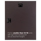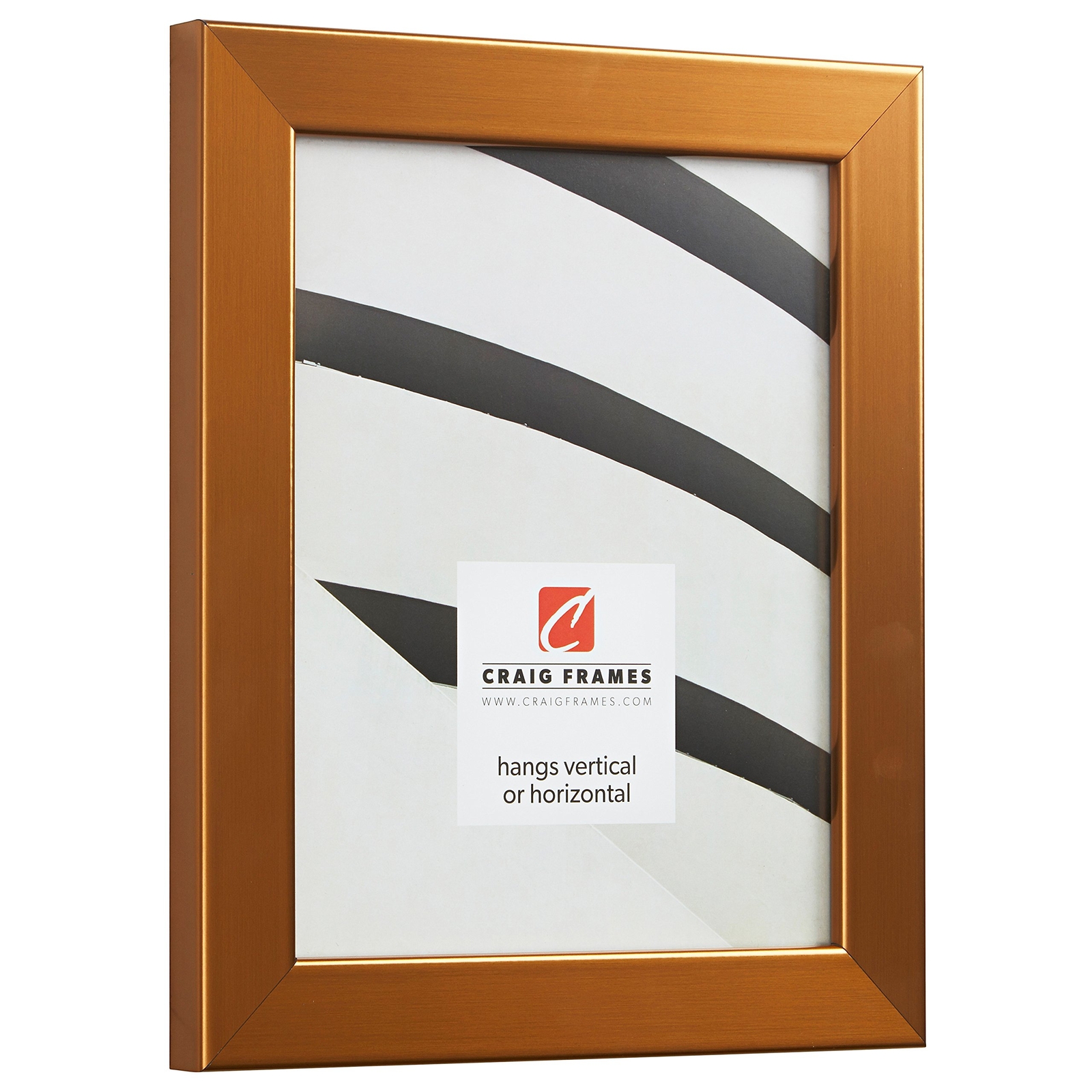 Modern style; stainless brass with copper tones; smooth laminate wrap finish (NOT ACTUAL METAL) Frame includes: glass, rigid black backing and pre-attached stamped hanging hardware Frame holds a 8 by 12-Inch photo/print/poster (viewable area reduced by .25 inches on each side due to frame lip) Frame moulding is 1.25 inches wide; solid MDF construction Frame is designed for WALL HANGING only (hanging hardware allows for portrait or landscape orientation)