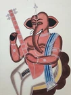 Bengal Kalighat Painting LORD GANESHA PLAYING SITAR 13in x 18in (8064) 25-30 years old. Hand made painting. Not printed Shipping by Registered Air Mail Postage combined on multiple purchases Item 8064