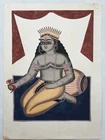 Bengal Kalighat Painting LORD KRISHNA SITTING 13in x 18in (8065) 25-30 years old. Hand made painting. Not printed Shipping by Registered Air Mail Postage combined on multiple purchases Item 8065