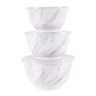 Better Homes & Gardens brand is one of America’s most trusted sources for all things home, and where style meets savings. Their mission is to offer products that help you create a home that matches your personality and lifestyle. There are many options to choose from when it comes to creating the entertaining set that is exactly right for your home. Add style to your serve ware and dinnerware collection with the Better Homes & Gardens 6-Piece Melamine Serving Bowl Set with Lids. Showcasing an elegant faux marble design, this round serve bowl set is sure to impress while you are entertaining or enjoying a meal at home. The beauty and sophistication of the marble design offers a functional and beautiful meal presentation to your table. Designed to mimic the look and feel of traditional ceramic, this round serve bowl set is made of BPA- free Melamine with durability to withstand drops and dishwashers. This smart kitchen staple is designed with you in mind and is sure to become a favorite. Set includes a 10.625-inch diameter bowl, 9.50-inch diameter bowl, and an 8.375-inch diameter bowl, each with lids. Each bowl is staggered in size so you will always find the right fit for your cooking or baking needs. Once you are ready to put them away, simply stack these functional bowls together. The nested design makes for convenient and compact storage which saves space in your cabinets or pantry. All 3 bowls feature a non-skid base. Made with 100% BPA Free Melamine that offers lightweight durability and versatility, this serve bowl set is perfect for everyday functionality and is great for all your entertaining needs. The Melamine Bowl Set with Lids is made from durable melamine that is shatter and impact resistant, making it ideal for family gatherings, indoors or out. Serve pieces and dinnerware in our contemporary styles help you achieve a look that is both chic and warm. Look for additional colors and prints available for purchase. Chic modern style brings a touch of elegance to your tabletop Durable Melamine Serving Bowl Set is ideal for indoor and outdoor, everyday use Dishwasher safe for convenient cleaning Bowls Nest for Easy Store Features Non-Skid Bottom BPA Free, Scratch Resistant, Shatter Resistant, Odor Resistant Material Content: 100% Melamine Set Includes: 1 Large Bowl with Lid, 1 Medium Bowl with Lid, 1 Small Bowl with Lid Dimensions: Large Bowl 10.625-inch Diameter by 6-inch Height, Medium Bowl 9.50-inch Diameter by 5.375-inch Height, Small Bowl 8.375-inch Diameter by 4.75-Inch Height Capacity: Large Bowl 5.5-Quart (5.2 L), Medium Bowl 3.9-Quart (3.6 L), Small Bowl 2.6-Quart (2.4 L) Not recommended for microwave use Shop the entire BHG Melamine Serve selection, available online and in stores