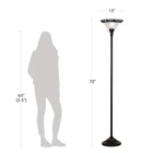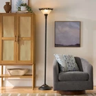 Decorate and illuminate your space with this Better Homes & Gardens Floor Lamp. It adds soft upward ambient lighting and elegant style to almost any room. The metal base of the 70" floor lamp features graceful Victorian details in a classic satin copper finish that works well in a bedroom, living area or office. It also features a torchiere frosted shade that boasts intricate etching and a decorative metal filigree rim for a beautiful look. The floor lamp with glass shade has an easy-to-reach three-way rotary switch near the shade to turn it on and off with a simple click. It uses just one three-way 150-watt incandescent bulb to give the light needed in the room. Enjoy a classic and modern look combined with this Better Homes & Gardens Floor Lamp. Metal base features graceful Victorian details Base finish: classic satin copper bronze Torchiere-style frosted glass shade features intricate etching and a decorative metal filigree rim Lamp style: Traditional Victorian Recommended for indoor use: place in living room, den, office, bedroom, etc. Uses one 150-watt incandescent bulb (not included) 3-way rotary switch near the shade to allow you to control lighting level On Feb 18, 2025 at 19:42:05 PST, seller added the following information: