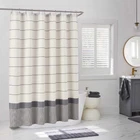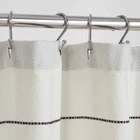 Make your bathroom feel like a serene getaway with the Better Homes & Gardens Maison Stripe Shower Curtain. The vanilla dream base is decorated with rich black slim stripes, lending a farmhouse appeal. The hem of this shower curtain features a block stripe pattern for more graphic appeal. Measuring 72in x 72in, this shower curtain can fit standard showers and baths in need of a refresh. Pair it with a shower liner of your choice for a mess-free bathroom. On Feb 16, 2025 at 18:49:18 PST, seller added the following information: