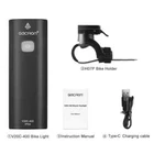 Bike Light V20C 400 Rechargeable Bicycle Front Lamp Waterproof Bike Headlight Helmet/Handlebar Light Bike accessories Specifications: Product name:V20C-400 Main LED:CREE XPG3 Max Brightness:400Lumens Floodlight Angle:118° Battery:1*18650 Lithium 2200mAh Input:Type-C 5V/1.0A Beam Distance:>200m Waterproof Level:IPX4 Net Weight:About 99g Size:99*35*32mm Material:Plastic Body Charging Time:3hrs Features: 400LM High Brightness 118°Floodlight Angle IPX4 Waterproof Compact & Light-weight USB Rechargeable Max 24hrs Working Time Symmetry Light Spot Design Support R03 Wire Remote Control Package List: 1*V20C-400 Bicycle Headlight 1*H07P Holder 1*USB Cable 1*User Manual 1*Packaging Box Notice: 1,New Upgrade!!! Floodlight Angle: upgraded from "95°" to ">118°"; Input: upgraded from "Micro 5V/0.7A" to "Type-C 5V/1.0A"; Wire Remote Control: upgraded from "R01" to "R03".(R03 wire control products need to be purchased separately.); Charging Time: upgraded from "3.5hrs" to "3hrs". 2,The net weight is only 99g, which is specially compact & light-weight, which does not burden the rider too much and increases the riding experience. 3,The waterproof function of V20C-400 needs to be used with R03 wire control to be effective.The wire control port needs to be firmly connectedto ensure no water seepage. 4,The symmetry light spot designallows the installation to be above or beneath the handlebar. 5,The V20C-400 is not only suitable for the Gaciron H07P handlebar bracket (mounted above the handlebar), but also can be paired with the Gaciron H15P helmet bracket (mounted on the helmet), the Gaciron H17 bracket (mounted beneath the handlebar), and the Gaciron H18 bike fork bracket (mounted above the front wheel). H18 H17 H15P