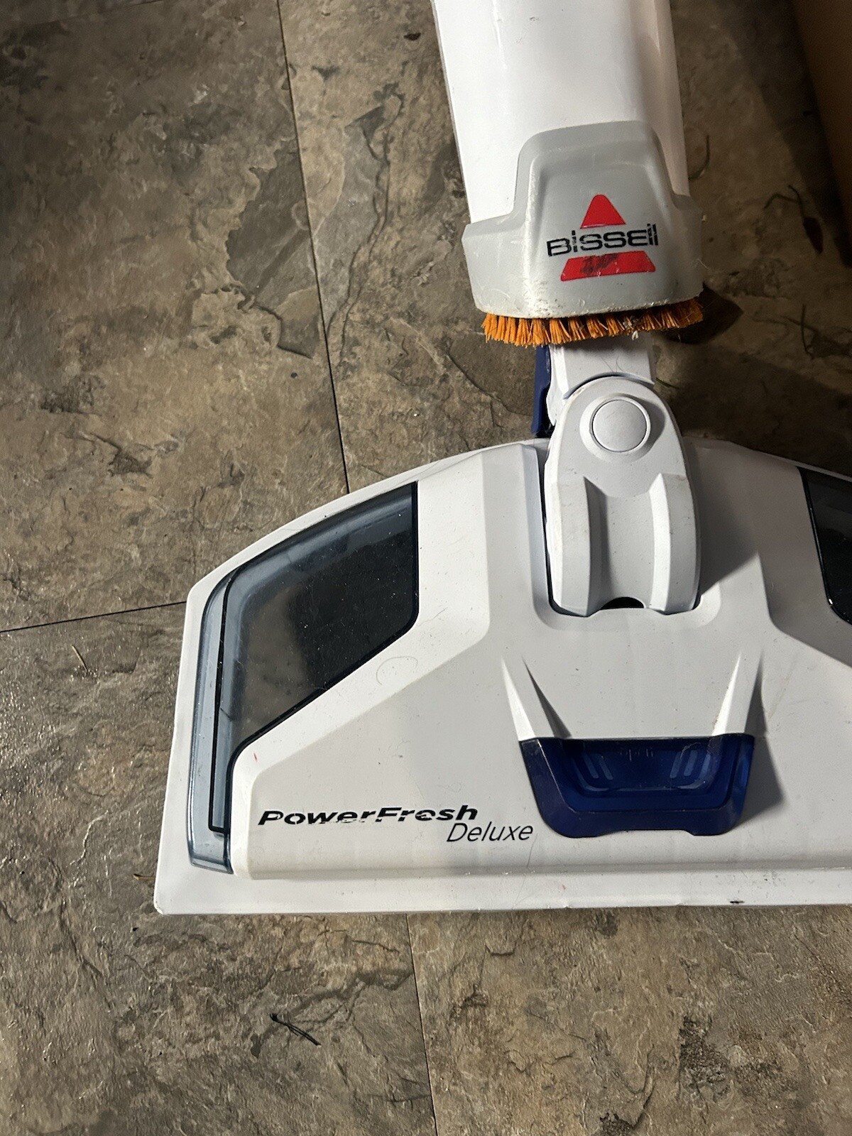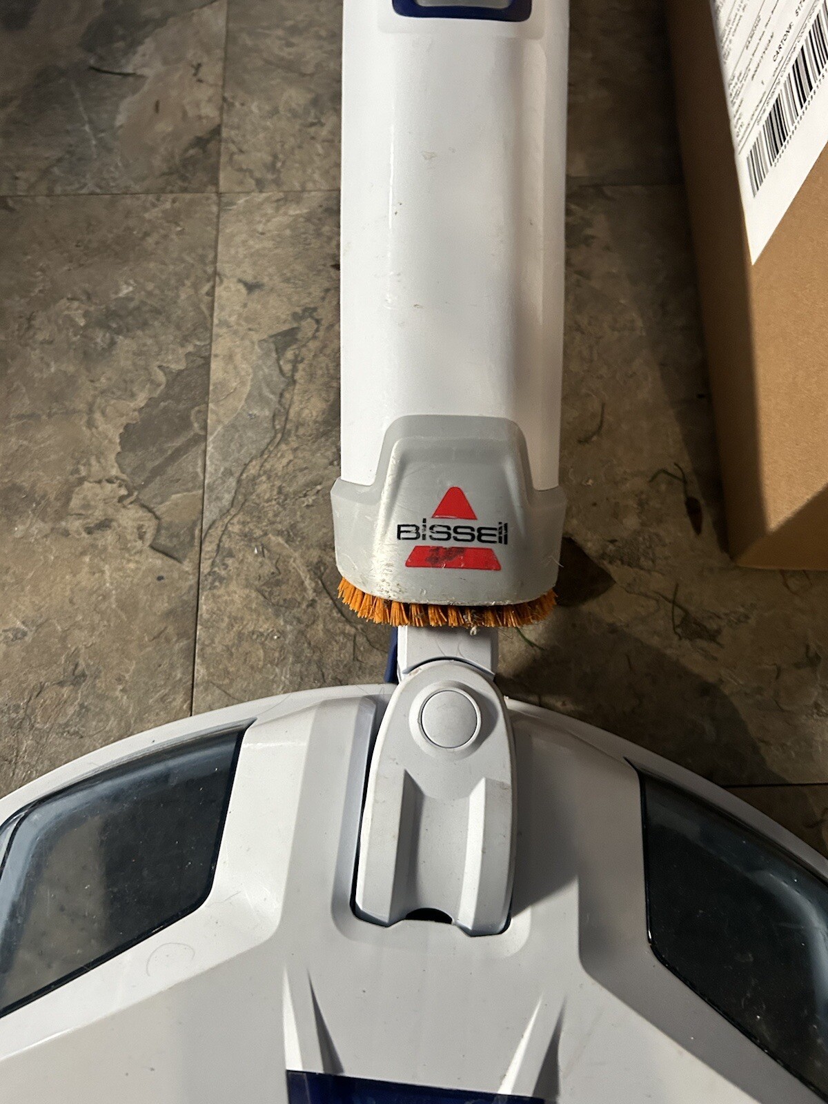 Brissel steam mop w detachable bottom to scrub. The only issue is the steam is on lowest setting No returns
