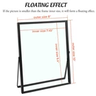 Package includes: Two set of 8 x 10 inch tabletop photo frames for Vertically display, sturdy metal floating frame in simple and elegant style. Please note that the print shown in the image is for reference only and is not included with the frame Versatile picture size: Each 8x10 floating frame can display 6 x 8, 7 x 9, up to 8 x 10 pictures, giving you more options for presenting your treasured photos. When the picture is smaller than the frame inner size, it will create a floating effect Premium quality: Our floating picture frame is made of a durable metal frame border and two pieces of real glass (rounded corners and polished edges). This high-quality construction ensures that your artwork is well protected from scratches and damage Easy to use: Our floating frame is easy to load and change the photo. First, remove the rubber strip with the small screwdriver provided, then gently remove the glass, place the photo, and then insert it Perfect home decor or holiday gift: Whether you're creating a personalized home or office space or preparing a treasured gift for your friends, our picture frames are an excellent choice. Showcase your special memories, photos, prints, posters and more with these versatile frames