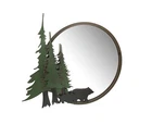 NOTE: DUE TO SCRATCHES AND DENTS IN THE METAL this item is being sold at a reduced price. Please see last photo for damages/defects. Add some reflective forest flair to your home decor with this black bear themed wall hanging vanity mirror. Crafted from high quality metal with laser cut details for a decorative mirror that will last for years. Measuring 22.5 inch long, 1.5 inch wide, 19.75 inch high, with two built-in hangers on the back, this wall mirror is ready for quick and simple mounting for use in any bathroom, bedroom, hallway, living room, or den. A great way to give your home a dash of lodge style or as a gift for forest loving friends and family. Our eBay Store About Us Add to Favorite Sellers Black Bear Forest Wall Mirror Decorative Metal Bathroom Bedroom Lodge Accent NOTE: DUE TO DENTS IN THE METAL this item is being sold at a reduced price. Please see last photo for damages/defects. NOTE - DUE TO DENTS IN THE METAL this item is being sold at a reduced price. Please see last photo for damages/defects. OVERALL SIZE - 22.5 Inch Long, 1.5 Inch Wide, 19.75 Inch High DURABLE MATERIAL - Crafted of High Quality Metal For Years of Maintenance Free Display VERSATILE MIRROR - Great For Your Bathroom, Bedroom, Hallway, or Den DETAILED CUT - Laser Cut Details For A Stunning Wall Sculpture NOTE: DUE TO SCRATCHES AND DENTS IN THE METAL this item is being sold at a reduced price. Please see last photo for damages/defects. Add some reflective forest flair to your home decor with this black bear themed wall hanging vanity mirror. Crafted from high quality metal with laser cut details for a decorative mirror that will last for years. Measuring 22.5 inch long, 1.5 inch wide, 19.75 inch high, with two built-in hangers on the back, this wall mirror is ready for quick and simple mounting for use in any bathroom, bedroom, hallway, living room, or den. A great way to give your home a dash of lodge style or as a gift for forest loving friends and family. Product Details Color Multicolored Height 19.75 Length 22.5 Weight 6.7 LB