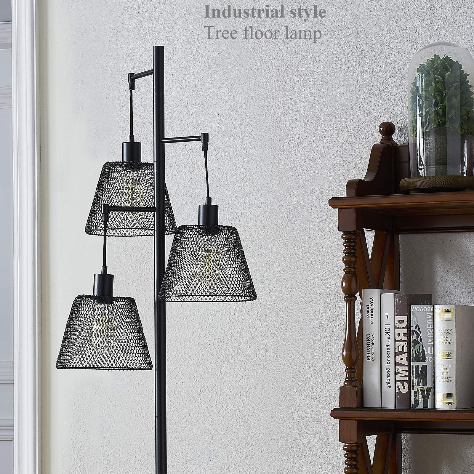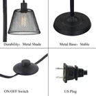 1. Various Applications Thanks to the black color, elegant lines and 3 beautiful net-mounted shades guarantee its exquisite appearance further, particularly net-mounted mixes classic feeling and modern clean lines-cages guard Edison bulbs! Our compliment getting floor lamp pairs well with industrial, farmhouse, rustic, and contemporary decor, a marvelous lamp for applying to various occasions. 2. High Quality The rustic farmhouse lamp is made of prime black matte, easy to clean, you will never need to worry about fading, but others’ will badly fade. Our heavy-duty sturdy base always keeps standing without sway or swing, making it safer to use indoors, especially there are active kids in your family, running come and back. 3. Easy to Install Easy installation saves your time and energy, only several minutes can get this 66inches (highly comfortable and appropriate height for home décor) rustic floor lamp assembled. More installation details can be seen on our instructions. 4. Warm/White Glow Makes You Comfortable Warm/white light gives off from three cages, emits an easeful glow that makes your home warm, relaxing, full of cozy and welcoming feel. Under such a nice ambience, you can fully enjoy your novel on the sofa or your favorite armchair, tell picture story to your sweeties, talk sweet words with your beloved honey, anything about warmth or love can be done. Installation Instructions ☛Please cut off power supply when you install the floor lamps or replace light bulbs. ☛You can quickly and easily install the floor lamp as it includes all mounting hardware. Satisfaction guaranteed: If you have any questions about the item or anything makes you unsatisfied, please contact us immediately. Our support team will be back to you in 24 hours because our number one goal is customer satisfaction and we are committed to making it right for you. 3-Heads Provide 360° Stable Lighting: 3 lights of this industrial floor lamp lie in 90° vertical separately on the tree lamp, no lightness angle. The multi-head design provides a great solution to the harsh brightness of traditional fixtures so that you feel relaxed. Under the light given off by this tall floor lamp, you can fully enjoy the comfortable ambience. Well-Made & Sturdy Base: our well-made classic standing lamp is made of superior metal from top to the base, black matting surface. Three metal net-mounted shade are firm and heavy-duty. The pole is straight and perfectly connected with the base, no swing. Base is reliable enough, never mind falling down because of a sign of disturbance or trouble. It’s quite safe to use, especially for children or pets. Step-On Switch & 66 Inches: this rustic farmhouse floor lamp is easy to turn on and off with step-on switch design. A slight step brings the light on, swift and convenient, ideal for living room, bedroom, bedside, study, etc. 66 inches height ensures your application appropriately, never mind too short to fit. Lamp Dimensions: Height 66", Metal Base diameter 10.23", Shade diameter 7.48",the long power cord 70"(5.9ft)offers more convenience. The tall lamp is controlled for three bulbs on or off at the same time. Bulb Requirements: Compatible with E26 socket type A bulbs (60W Max, bulbs not included).We suggest you using LED bulb 10W-12W, energy saving bulb 12W-20W, other bulb 40W-60W.