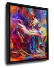 Blend Cota - Blended Expressionism The Colors of Pieta 14" x 11" Canvas Wrap Framed 100% Authentic and Official Art from the publisher Blend Cota Studios Mary holds her son in loving arms. Her face shows a quiet peace, yet also a resurrection of hope that death will not have the final word. The divine beauty of Michelangelo's sculpture "Pieta" is brought to you by Blend in a masterful creation of heavenly light and colors. Like a floating spirit that raises up, this portrayal of motherly pain is transformed into a painting of faith and hope for a bright future. Features : Canvas Open Edition is printed on high grade Premium Canvas Framed Canvas Open Edition - Italian black shadow box wooden frame Gallery Wrapped Open edition - hand stretched on hardwood Certificate of Authenticity included. Ready to Hang Made in The USA Blended Expressionism: One of Blend’s passions is to express himself in his works where his subjects take on a new perspective through the infusion of layers of vivid and bold colors. He applies what may appear to be free flowing random brushstrokes - soft and subtle yet blended with hard and powerful texture. The end result is a stunning work of art bathed in a kaleidoscope of color yielding a richness and perspective rarely seen - Blended Expressionism. About the Artist: Blend was always drawn to the studies of the renaissance masters and their incredible use of detail, perspective, depth, use of light and storytelling. Throughout his thirty-six passionate years of painting, Blend has mastered the style of his Renaissance heroes, with the goal of introducing to the world a collection of fine art that pays homage to a genre long forgotten while incorporating his unique artistry. Blend uses the old masters' skills and artistry and infuses vivid colors to bring his paintings to life - each telling their own breathtaking story. This is not only a revival of this lost art style, but also a rejuvenation. This is Renaissance Revival. ** All products are hand made and shipped directly from our publishing company. If there is any problem with your order please feel free to contact us. We want to make sure you are 100% satisfied with your order. We will always be sure to leave some great feedback as we ask for you to do the same. © Blend Cota Studios. All Rights Reserved.