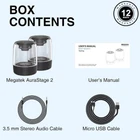 IMMERSIVE STEREO SOUND – Experience an immersive and spacious wireless stereo soundstage that makes you feel like you're right in the middle of the music, thanks to the featured TWS (True Wireless Stereo) capability. Equipped with premium speaker drivers, bass radiators and fine-tuned sound processors, this pair of speakers deliver clear, powerful, and balanced sound with deep, resonant bass. VIBRANT LED LIGHT SHOW - The LED lights will sync perfectly with the rhythm and beat of the music in 7 lighting modes, creating a mesmerizing light show that adds an extra dimension to your listening experience. EFFORTLESS CONNECTIVITY - Bluetooth 4.2 ensures wireless music streaming with stable pairing up to 66 feet (20 meters). Plus, take crystal-clear calls from your speaker with the touch of a button, thanks to the built-in speakerphone. The auxiliary (aux) input provides the option to connect your non-Bluetooth devices for wired music. UP TO 12 HOURS PLAYTIME - The built-in high-capacity rechargeable Lithium Polymer battery provides up to 12 hours of music playback at mid volume. WATERPROOF & PORTABLE - This IPX5 rated speaker is designed and built to withstand various weather conditions and has waterproof and dustproof capabilities. This handheld-sized speaker is designed to be lightweight (10 oz), making it easy to carry around in your bag, or hold in your hand. Product Description MEGATEK AuraStage Immersive Wireless Stereo and Stunning Light Show MEGATEK AuraStage With decades of expertise in sound engineering, Megatek combines cutting-edge technology, and meticulous craftsmanship to create top-notch speakers that redefine portable audio. Dual Portable Bluetooth Speakers An audio and visual experience like never before! Megatek AuraStage 2 - dual portable Bluetooth speakers are a perfect combination of unparalleled quality sound with immersive wireless stereo soundstage, thanks to its featured TWS technology, and visually stunning LED light show. Astonishing Sound Wireless Stereo Stunning Lights IPX5 Waterproof 12-Hour Playtime AUX Input Built-In Mic Immersive Wireless Stereo Sound Experience an immersive and spacious wireless stereo sound stage that makes you feel like you're right in the middle of the music, thanks to the featured TWS (True Wireless Stereo) capability. MEGATEK AuraStage Unparalleled Quality Sound Equipped with premium speaker drivers, bass radiators and fine-tuned sound processors, this pair of speakers deliver clear, powerful, and balanced sound with deep, resonant bass. Wireless Stereo Pairing (TWS) TWS capability pairs two Bluetooth speakers together and allows you to enjoy a true wirelessly stereo sound experience without the need for any wires or cables, creating a wider soundstage and a more immersive listening experience. Vibrant Led Light Show The LED lights will sync perfectly with the rhythm and beat of the music in 7 lighting modes, creating a mesmerizing light show that adds an extra dimension to your listening experience. Key Features 12-Hour Playtime The built-in high-capacity rechargeable Lithium Polymer battery provides up to 12 hours of music playback at mid volume. AUX Input The auxiliary (aux) input provides the option to connect your non-Bluetooth devices for wired music. Waterproof and Ultra-Portable This IPX5 rated speaker is designed and built to withstand various weather conditions and has waterproof and dustproof capabilities. This handheld-sized speaker is designed to be lightweight (10 oz), making it easy to carry around in your bag, or hold in your hand.