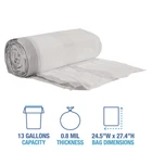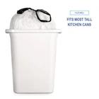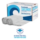 Boardwalk Drawstring Kitchen Bags, Drawstring, 13 gal, 24" x 28", White, 50 Bags/Roll, 2 Rolls/Carton (1DK100) - Pack of 2 Boardwalk drawstring kitchen bags are easily opened and closed with highly visible, black draw tape closure. Durable bag and closure keep contents secure and contained. White, 13-gallon, plastic trash bags fit in most tall kitchen waste receptacles and are designed to maximize can capacity. Commercial/Consumer Use: Consumer Use; Maximum Volume Range: 11 to 15 gal; Maximum Volume Capacity: 13 gal. Features Easy-open draw tape closure. Interleaved rolls. Design maximizes can capacity. Fits most tall kitchen waste receptacles.