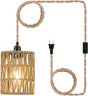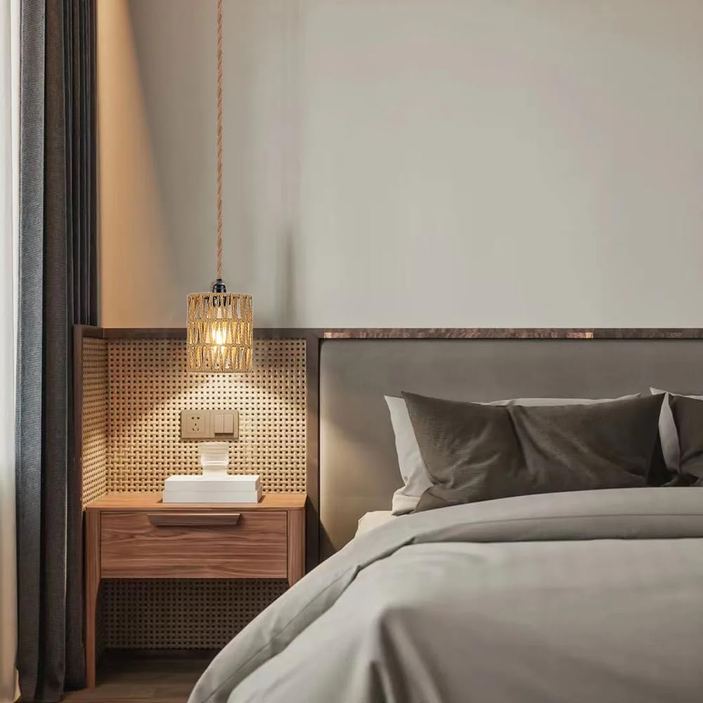 Boho Plug in Pendant Light Hanging Light with Plug in Cord Ceiling Lamp Rattan Unique Light Effect - The woven rattan Lampshade Hanging Lights adopts a cylinder design and is shaped like a Art Deco. When the lampshade is lit, the lampshade emits a dreamy superimposed aperture, and the pattern it casts on the wall is very beautiful, very warm and chic! This lampshade is the right choice for you to decorate your home or give it to your relatives and friends! Rattan Pendant Light Size & Material - Cylinder Lampshade Width:4.72" | Lampshade Height: 5.90" | Hemp Rope Cord Length: 15ft (450cm), can be adjusted | Lampshade Material: , safe and environmentally friendly | Input Voltage: 110V | Bulb Socket: E26 US standard bulb socket(Bulb not Included), compatible with a variety of Edison, CFL, or LED light bulbs. Wide Used - You can easily adjust the lenght of the light cord to fit your room lighting needs so this hanging light can be used as a wall Wall Lamps & Sconces, Hanging Lamp or Ceiling light. When lit, the lampshade emits a beautiful warm yellow glow and is shaped like superimposed aperture, which is dreamy and unique. The decor for living rooms, restaurants, kitchens, dining rooms, hallways, cafes, corridor, office, entrance, bedrooms,reading rooms and more. Easy to install - This Wall/Ceiling Pendant light is very easy to assemble and hang. The wicker pendant light includes installation instructions, and all accessories needed for installation.It is very convenient to install.When you install the wicker hanging lamp,make sure that the power is cut off. The basket hanging light also could be fully dimmable when used with dimmable bulbs and compatible dimmers. Farmhouse Pendant Light Fixtures - This Boho hand-woven plug in pendant light is made of hemp rope and wicker. Both this pendant light and the lighting effect are greatly decorative. It create a warm and comfortable atmosphere for any space. Product Description Vintage Dimmable Pendant Lamp with Plug In Paper Rattan Lampshade The hanging lamp cord consists of 100% natural braided hemp rope. This cord rope does not ruin the environment, strong and durable. The pendant lights with woven rattan lampshade have a unique design and is shaped like a cylinder. Boho paper rattan hanging lamp with plug and switch. Nostalgia Vintage Lamp! The Vintage Dimmable Pendant Lamp with Plug is a stylish and unique lighting solution for your home. With its vintage-inspired design, it gives any room a rustic and cozy atmosphere. The lampshade is made of original handmade paper rattan, which gives it a natural look. The combination of different materials creates an interesting contrast that enhances any interior. The pendant Light is perfect for dining room, in bedrooms, hallways, kitchens and other living areas. Thanks to the plug-in design, you can adjust the position of the lamp according to your needs and thus create the desired atmosphere. Invest in this timeless piece and enjoy the warm and inviting light it spreads. Perfect boho pendant lamp with rattan lampshade will certainly be an eye-catcher in your home. Boho Retro Style Paper Rattan Lamp Stylish Vintage Design This pendant lamp with plug will give your room a unique and charming boho ambience. The rattan lampshade is handmade and brings natural beauty to your home. Durable and Practical With a generous 450 cm long cable, you have enough room to install the lamp. The E26 socket allows you to use different bulbs to create the desired light and express your individual style. Easy to install Thanks to the plug, the lamp can be mounted quickly and easily. You do not need any additional tools or electrical knowledge. Technical Details The total length of the hand woven cable: 450cm; Lampshade Size: About 5.9" height, 4.72" diameter. Lampshade material: original paper,metal Lamp Holder: E26 (compatible with a variety of Edison, CFL or LED bulbs) Light bulb not included Vintage Compatible Pendant Lamps Fused all decor styles, you can place this lamp anywhere in your home. The long cable allows you to adjust the hanging length and position without worrying about where your socket is placed. Ideal for kitchens, bedrooms and dining rooms. You can use it anywhere you need creative light. Boho Rattan Small Pendant Lamp This light illuminates your dining room or bedroom with beautiful lighting. Inspired by the bohemian rattan lampshade, the cable is matched by rattan lampshade. The pendant lights with woven paper lampshade have a mesh structure design and is shaped like a cylinder. Adjustable Length DIY Lamp The vintage pendant lamp offers maximum flexibility in hanging heights according to your preferences. You can customize the pendant light to choose the right cable length for your lighting needs. Suitable for DIY enthusiasts. You can place this alone or add it in groups. Item model number 2021DLEGP0101059-US Light Source Type Energy Efficient/Incandescent/LED/Eco Halogen Style Modern/Vintage/Farmhouse/Boho Number of Items 1 Power Source AC/DC Fixture Type Freestanding Number of Light Sources 1 Control Method Touch Embellishment Boho Rattan Theme Boho Rattan Batteries Included? No Lighting Method Downlight Maximum Compatible Wattage 60 Watts Controller Type Push Button Unit Count 1.0 Count Room Type Kitchen, Living Room, Bedroom, Island, Dining Room Assembly Required Yes Switch Type Push Button Product Dimensions 4.72"L x 4.72"W x 5.9"H Material Bamboo, Rattan, Hemp Rope Installation Type Semi Flush Mount Model Name Vintage Plug in Pendant Light Finish Type Hand-Woven Bamboo Specific Uses For Product Plug in lamp for Kitchen Island Living Dining Bedroom Bulb Features Not Dimmable Indoor/Outdoor Usage Outdoor, Indoor Bulb Base E26 Light Color warm white Water Resistance Level Not Water Resistant Batteries Required? No Warranty Type Lifetime Item Weight 1.21 pounds Light fixture form Pendant Special Features plug in rattan pendant lights, plug in wicker pendant light, plug in rat