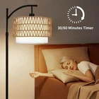 【3-in-1 Standing Lamp with Two Shade】The boho floor lamp comes with a boho rattan and linen drum lampshade, has 3 display effects. The removable lampshade can be freely combined according to your preference. Innovative design offers diverse options for everybody,this adjustable floor lamp suit for any decor and is suitable for such style as contemporary, vintage, mid-century, traditional, farmhouse and so the like 【Stepless Dimmable & Three Color Temperatures】Rustic tall floor lamp comes with a 12W LED bulb, which could be adjusted lightness from 0-100% brightness and 3-color temperature settings ranging from 3000K-6000K as needed; This dimmable floor lamp also have pre-set modes offering various scenes such as: read, nursery, work and night light. It comes with a memory function, allowing it to recall the last lighting mode 【Control via Remote or Footswitch】This arc floor lamp adopts a combination remote control & foot switch, assuring convenience for daily life. You can easily turn it on/off, adjust brightness, change colors or set timing modes by buttons (*2 AAA batteries not included) 【Height Adjustable & 360° Rotatable 】The retractable pole allows you to adjust the height of the tall lamp from 64.9"- 72.8", which can be adjusted to any height you desire, enabling you to achieve targeted, directed lighting wherever it is needed. Besides, you can easily turn pole of this stand up light by 360°to change the brightness direction when you are read, feeding, playing or watching TV, much convenient than to move the heavy-quality marble base 【Stable Base & 2-Year Free Warranty】 This rustic floor lamp is made of superior metal from the top to the base to make sure children's and pets' safety when they are playing in the room. The tall floor lamp is easy to assemble without any tools, you just need to screw all the parts together via following the instruction;If any problems with the floor lamp for bedroom decor, please contact us via buyer-seller message for a replacement or refund