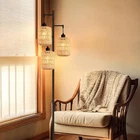 Tree Floor Lamp for Living Room,Bedroom,3-Lights Boho Rattan Floor Lights,Industrial Black Farmhouse Standing Lamp Wicker Rustic Adjustable Tall Lamp,Woven LampShade Floor Lamps Bohemian Rattan Floor Lamp:This Is A Hand-Worked Wicker Lamp Shade With Beautiful Delicate Detail And A Gorgeous Exterior. This Unique And Elegant Design Will Bring A Boho Atmosphere To Your Room And Beauty Your Space Adjustable Direction:The 3 light heads can be rotated 330 degrees to adjust, you can adjust different shapes according to your favorite, after each adjustment, this Floor lamps has become a different style. Be interesting.(NO Dimming ) 3 Edison Bulbs Included: Compared With Other Floor Lamp,Our floor lights contains three LED bulbs,You do not need to buy additional bulbs Safe and Easy Assembly:We take safety seriously into consideration, with black stable base and metal pole, this boho floor lamps for bedroom provides good stability from falling, which is safe for your baby and pet Perfect Decoration: This boho Tree tall lamp will be amazing accent for living room, bedroom, baby room, boho decor, wedding decor or bohemian themed parties. It will be a beautiful and practical for your family or friends