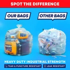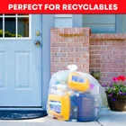 Are you tired of fussing around with those flimsy trash bags, which easily puncture and rip only to leave behind a mess? If so, these Clear trash bags by are the perfect solution for you! They're big, they're strong and they can be used both indoors in the kitchen, garage, and outdoors for organizing, cleaning up, or landscaping. Use them to rake up leaves, gather branches in the yard, or in large capacity trash cans. 33 gallon can liners trash bags 33" x 40" 16-micron 33 Gallon trash bags clear garbage bags 250 count Durable material. The tear and puncture-resistant plastic is both thick and able to stretch, making it ideal for accommodating all of your clean-up and storage needs. Large clear plastic recycling trash bags with a 33-gallon capacity means they've got enough room to handle even heavy cleanups.