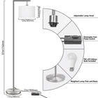 [Fully Dimmable & Pedal Dimmer Switch] -- Our LED floor lamp can be customized brightness gradually from 0%-100% according to your needs, gives you focused lighting for painting, reading or working. A switch on the cord allows you to easily control the floor lamp, sparing your hands to do something else and saving you the trouble of bending down to turn off the light. [Flexible Hanging Lampshade] -- This modern floor lamp 67inches comes with a 360° adjustable head, which can be rotated to any angles as you desired, effectively providing a wide range of illumination to your space. Perfect for any corner like near desk, sofa, side table,etc. Note: Please rotate the lamp head instead of rotating shade directly to avoid damage. [Modern Floor Lamp for Any Decor] -- Adopted with a slub imitation silk cloth lampshade and metal silver finish, this simply and elegant design makes the reading stand light fit easily in majority of interior styles no matter modern, traditional or minimalist. It is an excellent choice to add a eye-catching look for your bedroom, living room, or study room. [Soft White Bulb for Romantic Space] -- The package contains a 9W 3000K led bulb, you could easily install the dimmable floor light without finding the right size bulb to match it. The bulb brightness is equivalent to a 80W incandescent bulb, which not only saves up to 90% energy, but also offers a flicker-free and stable light, protecting your family’s eyesight. [Sturdy Metal Base & Easy to Assemble] -- Made of well-weighted metal pole and base, this montage tall floor lamp is stable enough to hold in anywhere and safe to kids and pets not being wobbled by accident. No tools required, just take a few minutes to following the instructions and video on the product page, you can enjoy the tall pole lamp immediately.