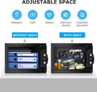 About this item SIZE: 13.78* 9.84* 9.84 inches. (The power bank and charging cable are not included) 0.6 CUBIC FEET CAPACITY: The bonsaii lockable storage box comes equipped with a removable shelf, offering flexible storage options for consumers' valuables; It can securely store important documents and jewelry with ease SECURE AND DURABLE: Constructed with SPCC steel, this safe is strong and reliable. It features two 18mm diameter active locking bolts, providing maximum security and protection for your valuables; The safe has undergone rigorous testing, proving its outstanding durability and material quality CONCEALED AND FLEXIBLE: The safe box has a felt-lined bottom to avoid scratches on the stored items; It also features pre-drilled installation holes and comes with two expansion screws for fixing securely inside a wall cabinet; This makes it compatible for use in various settings including, but not limited to homes, offices, and hotels THREE WAYS TO OPEN: Bonsaii's safe box offers three flexible and easy-to-use ways to open it; You can access it by using your personal code or open with the emergency override keys (the safe box is equipped with two keys), or charging the battery box with a type-C cable to avoid dead batteries or forgotten passcodes FCC CERTIFIED AND PROFESSIONAL SUPPORT: Trust in the FCC-certified quality of our product, which is built to last and deliver reliable performance over time; The Bonsaii professional safe box provides trustworthy customer service Product Description When replacing the batteries or using Type-C charging, the original password will be restored. If you encounter any difficulties or have any concerns during the battery replacement or Type-C charging process, please refer to the user manual. 4 STEPS TO SETTING PASSCODE STEP 1 Push the emergency lock cover STEP 2 lnsert the key into the keyhole and turn counterclockwise. Turn the knob clockwise to open the door STEP 3 Open the battery compartment and insert 4 x AA batteries (not included) STEP 4 Press the reset button (behind the door) , enter your passcode (which must be 3-8 digits) , and press "#" to store the password. Previous page USB Type-C Port Design To protect against dead batteries or lost keys NOTE: The power bank and USB C cable are not included Next page Type-C Port Design Lock Cover Design Sturdy Structure Capacity Indicator Light Design Versatile for Various Scenarios Shipping We offer FREE shipping on all orders! We ship within Three business days of payment, usually sooner. We use a selection of shipping services such as UPS, FedEx, USPS etc. We only ship to the lower 48 states, no APO/FPO addresses or PO Boxes allowed. Local pickups and combined shipping options are not provided at this time. Return You can return a product for up to 30 days from the date you purchased it. Any product you return must be in the same condition you received it and in the original packaging. Please keep the receipt. Payment We accept payment by any of the following methods: PayPal Please pay as soon as possible after winning an auction, as that will allow us to post your item to you sooner! Feedback Customer satisfaction is very important to us. If you have any problem with your order, please contact us and we will do our best to make you satisfied. Contact Us If you have any queries, please contact us via ebay. We usually respond within 24 hours on weekdays. Please visit our eBay store to check out other items for sale! Thank you for shopping at our store. Disclaimer We are working with different suppliers in USA to deliver the item to your doorstep. If you have any issues regarding the item, Feel free to ask.