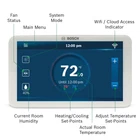 Help save energy and money with the Bosch Alexa-Enabled Connected Control Wi-Fi Thermostat. Easily control your home temperature with the sound of your voice as you communicate with the Alexa smart device. The full color 5-inch display thermostat touchscreen automatically turns on and off while you're away from home. Both comfort setting and intuitive scheduling makes it easy for you to choose a temperature for different times of the day without having to worry about your house being to hot or cool while not being there. Easily connect to Wi-Fi and view outside temperature to determine your in-home temperature throughout the day. The touch screen main menu features, date, time, temperature control, humidity, fan operations and general mode. You are able to access the main screen and set up thermostat from any smart phone or tablet. The Bosch Thermostat is compatible with any 24 VAC HVAC equipment on the market or any humidifier or dehumidifier. A C-wire (common wire) is required to power the unit. The C-wire is used to provide power to the thermostat and is available on most HVAC systems today that have three or more wires. Third party aftermarket products exist for adding powering options in instances where a C-wire does not exist. Includes a 5-year manufacturer . Product Enhancements for Commercial Use: Humidifier Algorithm Update allows the thermostat to control both evaporative and steam type external humidifier accessories. Dehumidifier Algorithm update includes Hot Gas Reheat compatibility that allows the thermostat to meet the humidity set point when connected to products equipped with a Hot Gas Reheat coil, such as a Bosch Water Source Heat Pump. This feature also allows the thermostat to meet the humidity set point through passive dehumidification when using Bosch Water Source Heat Pumps equipped with an ECM Motor. The new Cool to Dehumidify feature allows the thermostat to meet the humidity set point while in cooling operation when connected to an external dehumidifier accessory. Both configurations allow the thermostat to function as a humidistat to meet the humidity set point. SAVE ENERGY AND MONEY: This Alexa and Google Home-enabled, internet-connected programmable thermostat simply connects to Wi-Fi to control temperature and settings from your smart phone or tablet (fully functional without Wi-Fi as well) MODERN SLEEK TOUCH SCREEN: The full color, 5-inch display touchscreen allows easy scheduling to provide the most comfortable temperature for your home from anywhere COMPATIBILITY: Including heat pump (4 Heat, 2 Cool) or conventional (2 Heat, 2 Cool) systems, any 1-wire internally powered humidifier or dehumidifier, and most 24 VAC HVAC equipment on the market. NEW COMMERCIAL UPDATES: Updates allow control of both evaporation and steam type external humidifier accessories. Plus, hot gas reheat and cool to dehumidify capabilities. Now Dual Fuel system compatible; may work with HVAC systems that use both gas and electric power (more information on updates in product description) C-WIRE REQUIRED: A C-wire (common wire) is required to power the unit. Two wire systems are not supported. The C-wire is used to provide power to the thermostat and is available on most HVAC systems today that have three or more wires. Third party aftermarket products exist for adding powering options in instances where a C-wire does not exist