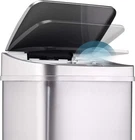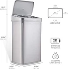Bote De Basura Para Cocina 13 Galones Acero Inoxidable Con Sensor De Movimiento 【Materiales de alta calidad】El sensor de movimiento infrarrojo resistente al agua evita que la humedad o cualquier derrame accidental dañe la unidad. Además, la base de acero inoxidable resistente a las huellas dactilares ayuda a mantener la lata limpia. 【Tecnología avanzada】La tecnología de detección de retardo preserva la vida útil de la batería y evita que las mascotas, los niños o las personas que pasan por allí abran innecesariamente la lata. Función de cierre silencioso para prolongar la vida útil del producto. 【Cierre de tapa con sensor de movimiento sin contacto】Sella el olor y elimina la contaminación cruzada de gérmenes. Requiere 2 pilas D (no incluidas), se recomiendan pilas alcalinas para un mejor rendimiento. 【Fácil y conveniente】El forro de anillo extraíble mantiene la bolsa de basura firme en su lugar y evita que la bolsa sobresalga para una apariencia ordenada y limpia.