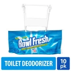 Keep your toilet bowl smelling fresh and clean with the Bowl Fresh Toilet Deodorizer. This fragrant toilet bowl rim hanger continuously eliminates odors by hanging on the inside of your toilet bowl. Simply clip it to the rim of your toilet, where the water jets are, for a quick and easy way to add long-lasting freshness directly in your toilet bowl and entire bathroom. This powerful toilet freshener deodorizes your toilet and bathroom without harming your plumbing or toilet tank. On Dec 15, 2024 at 17:52:34 PST, seller added the following information:
