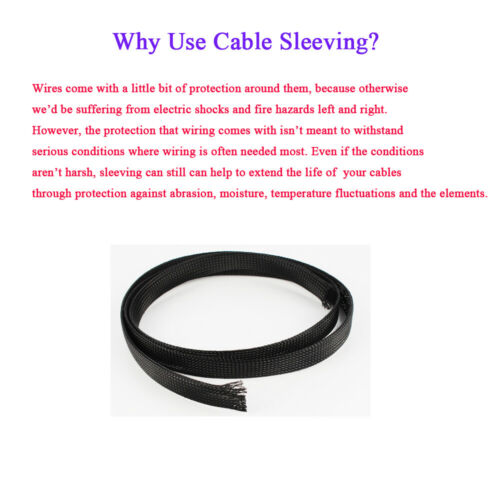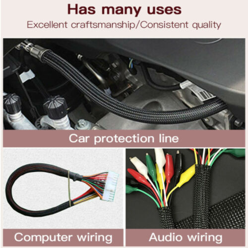 morethink , as an expert in the field of cable management,insist on providing customers with the top quality wire management products. Our cable management is used to wrap and protect wires & organize cables & hide and conceal wires in many application, e.g. Automotive,electronics, home and office etc. Expandable Braided Cable Sleeving - Management & Protection Cabes / Wires. What is Expandable Braided Cable Sleeving? Expandable braided cable sleeving is used as an alternative to heatshrink tubing. The difference between expandable cable sleeving and heat-shrink tubing is that expandable sleeving doesn't require any heating making it convenient, cost-effective and easy to use. The open weave braiding of this cable sleeving simply expands over the cables and components and contracts to provide a tight-fitting cover. The open weave of the sleeve also allows you to examine the wires underneath. Braided sleeving protects wires and cables from damage caused by abrasion from sharp edges, high impacts, and vibration. Cable sleeving, depending on the material used, also gives the cable protection from chemicals and solvents. Adjustable Length & Easy to Install. With our top quality cable concealer,You can easily hide cables and cords.Compared to other on-wall cord cover raceway, our cable hider is no glue , no break the wall and easy to replace. Protect PETS from Chewing Cords ,and will leaveit alone. Worked perfectly for cleaning up wiring on our home theater system. You Can Multiple Sizes & Length! Premium Braided Expanding Cable Sleeving Wiring Harness Perfect for Industrial, Automotive, Household,and Marine Applications Description Great for wrapping power/ground cable 100% Brand New Protect Wires from abrasions and heat Provides a nice look for a clean install Easy to bend Expandable Professional Installation is Highly Recommended No Instruction Included Fitment Pls Confirm the item if it matches your vehicle before you purchase Package including Shown As The Pictures Our Braided Cable Sleeing Wrap resistant to various abrasions, reduct damage,suitable for various electric insulation, efficiently arranges and protects the cables, ensures the cable management to be neat and clean/Insulation Sealing Wear-Resistant Features: ★Great for wrapping power/ground cable. ★Protect cables from wear & high temperature. ★Prolong service life of cable. ★Very easy to bend. ★Ultra expandable (150% of original size). ★Gives an attractive look with a clean install We are the direct source. We do wholesale for small businesses and manufacturer(s). Please call or send us a message through the eBay messaging system for a quote for wholesale pricing for rolls and bulk orders.