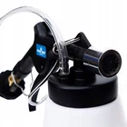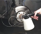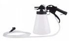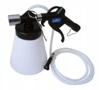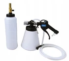 Description: The set allows one-man filling and bleeding of the brake system with the pressure of 6-8 Bar (90-120 PSI) from the pneumatic system (compressor). Kit: Device for bleeding the brake system with a 2m long hose A device for changing the brake fluid with a capacity of 0.75l, which immobilizes the fluid filling container Four additional adapters with dimensions: - 21mm to 30mm - 24mm to 32mm - 28mm to 37mm - 32mm to 41mm TECHNICAL DATA : Inlet pressure 6-12 Bar (87-174 PSI) Tank capacity 0.75 liters Air consumption 180l / min 60% vacuum