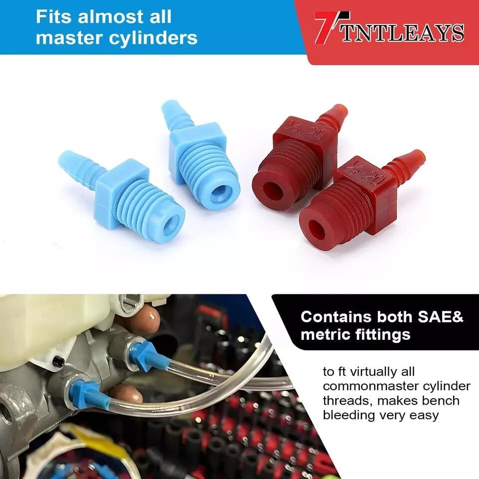 CONTACT US DIRECTLY FOR FREE & PREPAID RETURNS Master Cylinder Bleeder Kit Replacement for 13911, Brake Bleeding Kit, ✅【Complete Master Cylinder Bleeder Kit】This master cylinder bleeder kit is a comprehensive solution, designed as a replacement for model 14151. It includes 2 transparent soft hoses, 10 pairs of red threaded fittings, 10 pairs of blue threaded fittings, 2 T-joints, a pair of clamps, and a roll of PTFE tape, ensuring you have everything needed for effective brake bleeding. ✅【Universal Compatibility】Our brake master cylinder bleeder kit features both SAE and metric fittings, making it suitable for nearly all common master cylinder thread sizes. This versatility ensures compatibility with a wide range of vehicles, delivering convenient and reliable performance. ✅【Durable and Reliable Construction】Durable and Reliable: This master cylinder bleed kit is made of high-quality plastic to ensure reliable performance and long service life, easy to clean ✅【Clear Silicone Hoses】The transparent silicone hoses in this brake bleeder kit allow for easy confirmation of fluid presence, ensuring a hassle-free bleeding process. You can work with confidence, knowing that you’ll see exactly what you need. ✅【Customer Satisfaction Guarantee】We encourage you to verify the type, size, and quantity of components to ensure you choose the right master cylinder bleeder kit for your vehicle. Our commitment to customer satisfaction means we're here to assist you with any inquiries, ensuring a smooth experience with our product. ✅【Ideal Gift for Car Enthusiasts】Presented in an exquisite color box, this complete brake bleeder kit makes for the perfect practical gift for automotive enthusiasts and mechanics, combining utility with thoughtful presentation. Product Description The transparent silicone hoses in this brake bleeder kit allow for easy confirmation of fluid presence, ensuring a hassle-free bleeding process. You can work with confidence, knowing that you’ll see exactly what you need. This master cylinder bleeder kit is a comprehensive solution, designed as a replacement for model 14151. It includes 2 transparent soft hoses, 10 pairs of red threaded fittings, 10 pairs of blue threaded fittings, 2 T-joints, a pair of clamps, and a roll of PTFE tape. Our brake master cylinder bleeder kit features both SAE and metric fittings, making it suitable for nearly all common master cylinder thread sizes. This versatility ensures compatibility with a wide range of vehicles, delivering convenient and reliable performance. Presented in an exquisite color box, this complete brake bleeder kit makes for the perfect practical gift for automotive enthusiasts and mechanics, combining utility with thoughtful presentation. Metric dimensions: M8-1.25, M10-1.25, M10-1.0, M11-1.5, M12-1.0 Imperial size: 3/8-24In, 7/16-24In, 1/2-20 In, 9/16-18 In, 9/16-20 In REVIEWS The product came very well packaged. I'm very happy. thank you for everything. Seller strongly recommended. This is great! I definitely recommend! Product looks amazing Delivery was fast. Excellent seller, great communication. I advise everyone