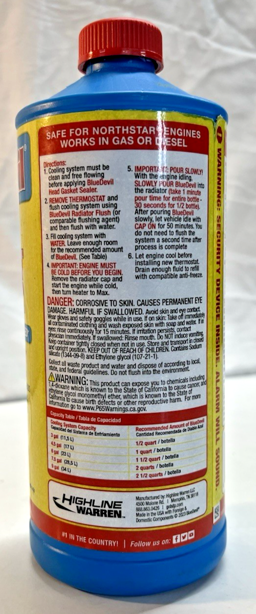 BN &Sealed Blue Devil Automotive Blown Head Gasket Sealer 38386 32oz Permanent Repair Brand new and sealed in bottle. Get your ride running stronger and longer with "Blue Devil" Head Gasket Sealer-a trusted, pour-and-go solution designed to permanently seal leaks in head gaskets, warped or cracked heads, heater cores, freeze plugs, and more. Safe for both gasoline and diesel engines, this 32-ounce formula has no solid or particulate matter to clog your system. Just flush, pour, and drive-your engine will thank you! Features & Specs: Brand: Blue Devil Part Number: 38386 Size: 32oz UPC: 663356383865 ASTM D3147 & D1881 compliant Safe for GAS OR DIESEL Safe for all engine materials-metal, aluminum, cast, alloy or plastic Used by: DIYers and mechanics alike with 95% success rate guaranteed Why you'll love it: A smart, budget-friendly fix that saves you time and money Storm-proof solution that even works on high-temp, high-pressure situations Comes in a generous 32oz bottle-enough for multiple fixes or large engines Blue-colored formula makes it easy to see working while circulating through your system No mess, no equipment-you can do it at home. Fun Fact: Blue Devil's pour-and-go formula was designed to simplify head gasket repairs-many users report their engine passing the no-leak grill test even after thousands of miles. A note from your seller, All Autumnz Attic items come from a smoke-free, pet-free home. Some are locally sourced, carefully cleaned and refreshed before being listed. We encourage you to review all photos and read the full item description, and please don’t hesitate to reach out with any questions or concerns. We gladly consider the most reasonable offers and typically ship within 24 business hours. Every item is packaged with the utmost care to ensure it arrives safely. Whenever it applies, we combine shipping, and if your actual shipping cost is lower than what you paid, we will notify you and send a refund for the difference. Be sure to check your package for a little surprise, our way of saying thank you. Please do NOT open your package with a knife as it may cut or damage the product inside. You are our highest priority, and we truly appreciate your support. Please leave feedback to let us know how we’re doing, and don’t forget to check back often—we’re always adding new treasures. Thanks for shopping by Autumnz Attic.