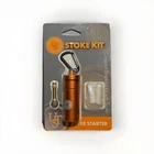 The ULTIMATE Survival Gear™ Stoke Kit Compact Sparking Kit with Tinder Quick and convenient kit for starting campfires, barbecues, and fireplaces. The included B.A.S.E.™ Case 1.0 is handy for keeping all components dry and ready for use. Contains: One (1) Micro SparkWheel™ – Optional one or two-handed operations, made of durable, high quality brass Two (2) Light-Me™Tinder Pieces – For best results, tear or cut the tinder piece apart to expose the fine fibers One (1) B.A.S.E.™ Case 1.0 – Anodized aluminum capsule with a screw-top cap and o-ring for waterproof seal will keep all contents dry