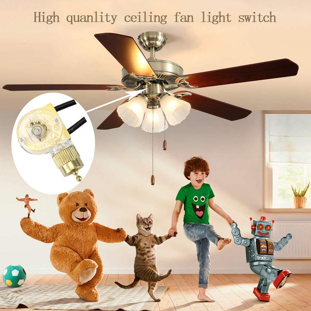 This pull chain switch is a simple yet effective solution! Installed it on my ceiling fan in minutes—just make sure to note the wiring before disconnecting the old switch. The brass chain adds a nice touch, and the switch operates smoothly. Rated for both 125V and 250V, it's versatile for lamps, cabinets, or fans. Durable plastic housing feels sturdy, and for the price, it's a reliable upgrade. Works exactly as expected—no complaints!
