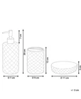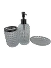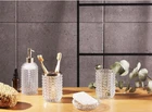Add a touch of elegance to your bathroom with this 3-piece accessory set from House of Hampton. The set includes a clear glass toothbrush holder, lotion or soap pump, and cup, perfect for keeping your bathroom essentials organized and easily accessible. The set is made of high-quality glass and is suitable for adult use. The set is ideal for any bathroom and is perfect for holding lotions, soaps, and toothbrushes. The clear glass design adds a modern touch to any bathroom decor. The set is easy to install and use, making it a great addition to any home. Never used.