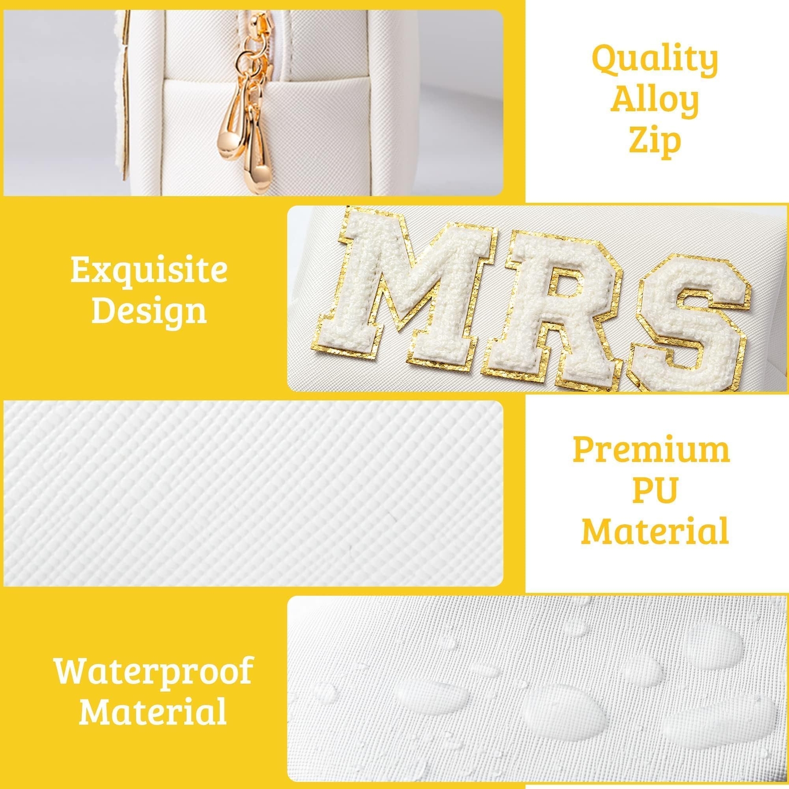 Belanttega Bride Patch MRS Cosmetic Bag PU Leather White Letter Portable Waterproof Purse Organizer Travel Toiletry Bag Engaged Makeup Bag Gift for Women Girls, Gold Portable Size: The size of the Cosmetic bag is approx 9.06inch x 4.96inch x 1.18inch, which is the perfect size to storage your commonly used makeups and accessories. And it is in the small size and suitable to be kept in your purse, suitcase, luggage, package and so on. Believe it will be the excellent travel companion! Premium Material : Surface premium waterproof PU leather, cute design, waterproof and durable. Double zipper made of high quality alloy, easy to close or open. Minimalist Design: The Cosmetic bag with white color and has a big white “MRS” letter with gold trim is stuck in the middle. The overall feel of our cosmetic bag is elegant and minimalist which is very easy for you to match various styles of Bag. Multifunctional: It has the advantages of small size and large capacity. It can store the cosmetics needed for daily use. The cosmetic bag can not only store cosmetics, but also be used to store toiletries, skin care products, electronic products, stationery, etc. Excellent Gift : This custom cosmetic bag is the perfect gift for wife, girlfriend, mom, sister, daughter, family, lover, teenage girls on Valentine's Day, Graduation, Prom, Birthday, Christmas and other holidays. SHIPPING Domestic Buyers - We have confidence in our products, but if you are not fully satisfied please contact us within 30 days of purchase and you will get full refund. - We ship within 3 business days of payment, usually sooner - We offer FREE shipping on all orders! - We only ship to the lower 48 states, no APO/FPO addresses or PO Boxes allowed International buyers – please note: Import duties, taxes, and charges aren't included in the item price or postage cost. These charges are the buyer's responsibility. - Please check with your country's customs office to determine what these additional costs will be prior to bidding or buying. * Order Cancellation Policy ** You can return a product for up to 30 days from the date you purchased it. 1. The seller reserves the right to cancel the special case only due to eBay cancellation fee. 2. The decision of seller is the final. 3. The seller will respond to the cancellation request within 2 business days. Please wait for the result of cancellation. 4. In case the cancellation is not completed by some reasons, the buyer can follow the options below to get the refund. 4.1 The buyer can reject the item when it arrives. 4.2 The buyer can send the item back to the seller within 30 days If the buyer receives item (USA Shipment ONLY). The seller will provide the FREE return label to the buyer when the buyer opens " Return Item" case on eBay by using the reason as "Change my mind" ONLY. 5. When buyer has placed the order. The order will be processed and completed by automatic warehouse system within 5 minutes. In case that buyer sends the cancellation request after 5 minutes of placing the order, the request will be rejected. **Sending direct message to cancel the order is not allowed for every case.* Return Policy For the return case - If buyer would like to return the items for refund or replacement, please CONTACT SELLER to receive the free return label from seller. The refund or replacement will be processed with the tracking number of return label which is provided by seller only. The other ways of return which are not approved by seller will not be processed for the refund or replacement.