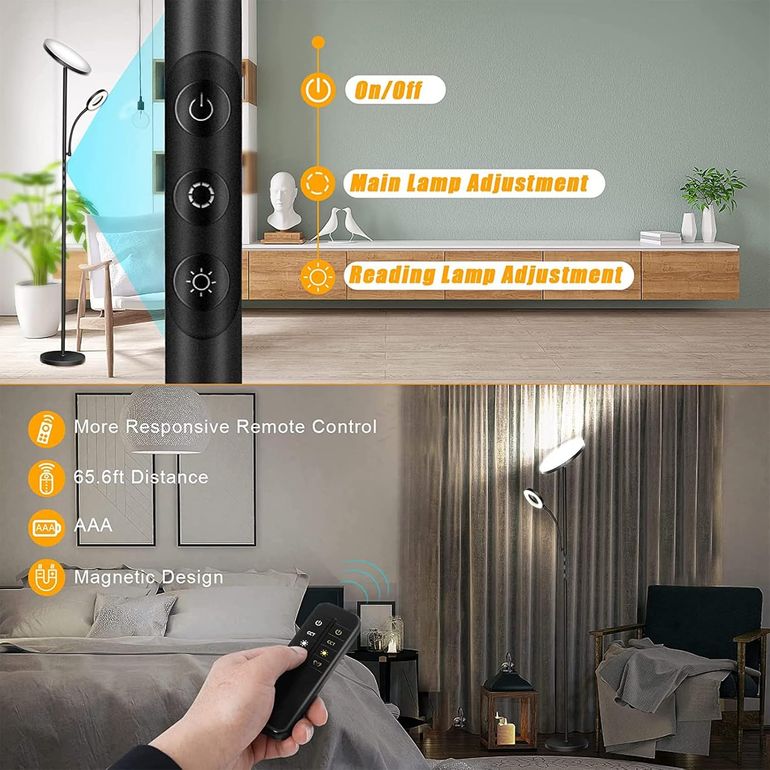 LED Floor Lamp, 4300LM 42W Bright Standing Lamp with Gooseneck Reading Light, 2700K-6500K Stepless Dimming Modern Torchiere Lamp with Remote/Touch Control, 69" Tall Lamp for Living Room Bedroom Office Ships from USA | 30-Day Free Returns Product Details: Light Source Type LED Style Modern Number of Items 1 Power Source Corded Electric Number of Light Sources 1 Country of Origin China Batteries Included? No Lighting Method Uplight Mounting Type Floor Mount Lamp Type LED Floor Lamp Number of Pieces 1 Room Type Living Room Assembly Required Yes Efficiency High (88.89% energy efficient, long lifespan) Product Dimensions 9.8"D x 9.8"W x 69"H Material Powdered Metal Steel Installation Type Freestanding Controller Type Remote Control Finish Type Coated Indoor/Outdoor Usage Indoor Brightness 4300 Lumen Control Method Remote, Touch Water Resistance Level Not Water Resistant Batteries Required? No Item Weight 9.47 Pounds Connectivity Technology IR Special Features Memory Function, 1 Hour Timer Special Feature Memory Function, 1 Hour Timer Shade Color Black Shade Height 6E+1 Inches Bulb Shape Size A19 Color Temperature 6500 Kelvin Certification CE, UL, FCC, ROHS Color Black Floor Lamp Wattage 42.0 Watts Is Cordless? No Base Material Metal Is Waterproof False Voltage 110 Volts (AC) Recommended Uses For Product Reading Shade Material Iron Finish types Coated Included Components Remote Control Switch Type Touch Why Buy From Us: Fast & FREE Shipping on all orders All items ship directly from USA warehouses Easy returns – your satisfaction is our priority 24/7 customer support – we’re here to help Shipping & Handling: Most orders are processed within 1 business day . Tracking will be uploaded as soon as your order ships. Estimated delivery time: 2-5 business days . Returns: If you’re not fully satisfied, return the item within 30 days for a full refund or exchange. Buyer pays return shipping unless the item arrives damaged or defective. Shop with confidence – Thousands of happy customers trust us for quality products and fast service!