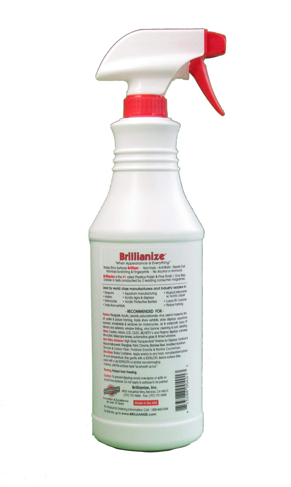 Brillianize 32 Ounce (944 ml) Trigger Spray Bottle High-Density Polyethylene (HDPE) : Durable, chemical-resistant, hygienic—ideal for water, milk, cleaning products, or chemicals. Product Details Brand Brillianize Product Type Glass Cleaners Mpn 32-12W Trigger spray has adjustable nozzle for fine spray or stream. Non-toxic Anti-static No alcohol or ammonia Safe to use around children and pets - Powered by