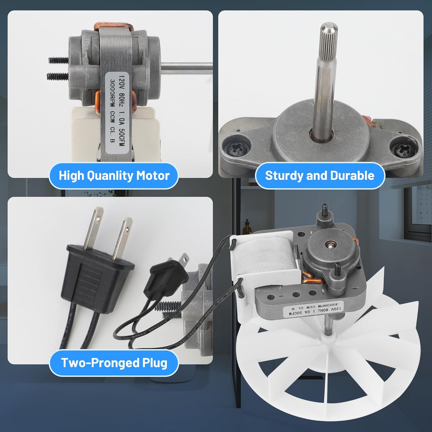 BP27 S97012038 Bathroom Vent Exhaust Fan Motor and Wheel for Broan Nutone 0.29A High-Quality: 97012038 Bathroom exhaust fan motor (with plug), 120V, 60Hz, 0.29A, 3000 Rpm, 50 CFM, CCW, CL B, this bathroom fan motor 97012038 is designed, tested, and certified to ensure your product runs at peak performance Replaces Part: Compatible with Broan NuTone 659, 662, 663A, 663B, 663C, 663D, 663D, 663E, 668, 678, 678B, 688, 688A, 688B, 688C, 688D, 688E Compatible Models: Our bathroom fan motor S97012038 replaces 1172611, 97008511, 97008512, 97012038, 97012040, 99080090, 99080093, 99080141, 99080165, 99080207, 99080216, 99080229, 99080230, 99080404, 99080406, S97008511, S97008512, S99080090, S99080093, S99080165, S99080216, S99080230, S99080406 and AP5611025 Specification: PANDEELS Bathroom fan motor BP27 S97012038 dimensions is 4" x 3" x 2.5". Wheel Measures 4-5/8" diameter x 1-1/8" high, wire with 2 plugs. 120 VAC; Sound Level: 2 Sones; Shaft Type: Splined, Shaft Diameter: 3/16", Shaft Length: 1-3/4"; Impeller OD: 4-5/8"; Rotation: CCW; Amps: 0.29A; RPM: 3000RPM; CFM: 50 CFM Easy To Install: When your bathroom fan motor becomes noisy or fails to start, simply remove the mounting bracket from its original location and replace the SM2038 S97012038 bathroom fan motor in its original position. NOTE: Turn off the power before installing this part Strong Team Support: If you have any questions after receiving the S97012038 electric motor kit, please feel free to email us, We will reply within 12 hours and we provide 7/24 service. [Logging in your Buyer Account > Click Your Account > Your Order > Contact Seller] Product Description Item model number BP27 S97012038 Bathroom Fan Motor Country of Origin China Voltage 120 Volts (AC) Model Name BP27 S97012038 Bathroom Fan Motor Horsepower 0.03 hp Speed 3000 RPM Package Dimensions 5.24 x 4.84 x 3.9 inches; 1.23 Pounds Complimentary Shipping and Easy Returns Need to return something? Enjoy our 30-day hassle-free return policy! Take advantage of free shipping across all 48 contiguous states! Your order will be dispatched within 1-2 business days once payment is confirmed. Your Opinion Matters! Your happiness is our main goal! We welcome your feedback! If you encounter any problems, reach out to us right away, and we’ll be here to help. Explore the Extraordinary! Our collection showcases fascinating products that are sure to capture your attention. What surprises await you? Delve in and discover unique items that enrich your daily life. Don't miss the amazing things we have in store for you!