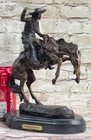 Bronco Buster Remington Western Cowboy Horse Rodeo Rider Bronze Marble Artwork Bronco Buster Remington Western Cowboy Horse Rodeo Rider Bronze Marble Artwork Condition : This sculpture is in a perfect condition. Bronze Dimensions with Marble Base: Height 10" X Width 9" Marble Dimensions: Diameter 7" Height without base:7" Weight:7 LBS Inventory:31-630805331 Experience the thrilling spirit of the American West with this remarkable bronze sculpture depicting a cowboy on a horse, charging through the untamed wilderness at breakneck speed. The horse rears up on its hind legs, poised for a lightning-fast gallop. The cowboy embodies the essence of the Wild West, adorned in a classic cowboy hat, chaps, and a handkerchief, exuding an aura of rugged determination. In his right hand, he firmly grasps a whip, ready to crack it and propel himself forward with incredible velocity. Crafted with the renowned lost wax method, this statue stands without a base, allowing for a seamless integration into any space. It serves as a testament to the artistic prowess of the esteemed sculptor, Remington. Frederic Sackrider Remington, a celebrated American painter, illustrator, sculptor, and writer, dedicated his talent to immortalizing the cowboys, Native Americans, and the U.S. Cavalry of the old American West. His works encapsulate the essence of the 19th-century American West, showcasing his deep admiration for the iconic figures and rugged landscapes. Invite the adventurous spirit of the Wild West into your home or office with this exceptional bronze sculpture. Display it as a testament to the untamed beauty and the captivating stories of the American West. As you behold the masterpiece, you will be transported to a bygone era of daring exploits and endless possibilities. Celebrate the legacy of Frederic Sackrider Remington and his enduring love for the cowboys, Native Americans, and the U.S. Cavalry by owning this magnificent bronze sculpture. It is not merely a work of art but a profound homage to the rich heritage and timeless allure of the American West. inkfrog terapeak Bronco Buster White House Decoration by Remington Bronze Sculpture Statue Figure www.bronzhaus.com Video will open in a new window Using the eBay App? Paste link into a browser window: [isdntekvideo] Shipping Terms : Most of our items are shipped via USPS (United States Postal Service) mail or UPS. Most orders are shipped within 24-48 hours of purchase. Please be aware that not all items are available for USPS shipping due to size and weight. We do ship to Hawaii, Alaska, Canada, Puerto Rico, APO/AE, and U.S. Virgin Islands, however, an additional charge may be required. Please contact us before making any purchases in these areas. For Non-USA customers, you may be responsible for all duty, tax, brokerage fees that may be due upon delivery (shipping costs cover freight charges only). We also ship internationally. Please refer to the "Shipping and Handling" chart for the rates for each area. Payment : We accept just about any form of payment. PayPal, Master Card, Visa or American Express credit cards. Money orders, cashiers checks, and even personal or business checks. For governmental institutions, we will also accept a purchase order. Please understand that for personal or business checks we have to wait for the check to clear (usually 7 days) before shipping. Condition : New Detailed Hand Crafted Hot Cast Bronze Satisfaction Guaranteed. This is Stock Photo, Slight Color Variation!! Listing and template services provided by inkFrog
