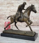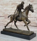 Condition : This sculpture is in perfect condition Bronze Dimensions with Marble Base: Height 12.5" X Width 12.5"nbsp; Marble Dimensions:12.5" X 5.5" Height without base:11.5" Weight:20 LBS Inventory:27B3338472 Experience the exhilarating world of polo with this captivating bronze sculpture that captures the essence of the "Sport of Kings." Swiftly riding through the field on his majestic stallion, the player prepares to strike the ball with a powerful swing of his mallet. This dynamic moment, frozen in bronze, pays homage to the grace and intensity of this revered sport that gained popularity in Britain. Crafted with precision and artistry, the sculpture is a masterpiece made using the ancient and intricate lost wax method. This technique ensures that every detail, from the flowing mane of the stallion to the focused determination of the player, is preserved with unparalleled accuracy. The sculpture stands as a testament to the skill of the artist, signed with the distinguished mark of Milo. As you admire this 100% bronze creation, you are transported to the heart of a polo match, where the synergy between rider and horse is a dance of skill and athleticism. Whether you're a fan of equestrian sports or appreciate the artistry of sculpture, this piece invites you to celebrate the timeless allure of polo and the craftsmanship that brings it to life. Valentines Day Gift. Bronze Statue BRONZE BY MILO POLO PLAYER HORSE SCULPTURE www.bronzhaus.com Video will open in a new window Using the eBay App? Paste link into a browser window: [isdntekvideo]