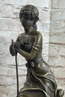 Bronze Sculpture Dreaming By Auguste Moreau Art Deco Nouveau Deal Gift Artwork Bronze Sculpture Dreaming By Auguste Moreau Art Deco Nouveau Deal Gift Artwork Condition : This sculpture is in perfect condition. Bronze Dimensions with Marble Base: Height 14" X Width 5" Marble Dimensions: Diameter 5" Height without base:13" Weight:9 LBS Inventory:78STE43887 Experience the timeless beauty of the handmade bronze statue by Auguste Moreau. This exquisite sculpture is crafted using the traditional Lost Wax Casting Process, ensuring a high-quality piece that can be treasured and passed down through generations. Every small detail is meticulously hand-finished, resulting in a stunning bronze artwork that is sure to become a favorite. Not only is this bronze statue a work of art, but it is also designed to withstand the elements and requires minimal maintenance. Its durable construction allows for impressive display in various settings, whether it's showcased in a home, office, or even outdoors. The craftsmanship and attention to detail make it an exceptional gift for any occasion. With over 26 years of experience, our bronzes are Foundry Direct, meaning they are handmade and cast using the same traditional process as sculptures created a century ago. We take pride in offering the highest quality at the lowest price, ensuring that you receive a remarkable bronze masterpiece that will be cherished for years to come. Discover the beauty and value of our bronze sculptures and enjoy the assurance of our lowest price guarantee. Innocent Young Lady Holding Flower Bronze Sculpture Statue Figure Auguste Moreau STE-438 Video will open in a new window Using the eBay App? Paste link into a browser window: [isdntekvideo] Shipping Terms : Most of our items are shipped via USPS (United States Postal Service) mail or UPS. Most orders are shipped within 24-48 hours of purchase. Please be aware that not all items are available for USPS shipping due to size and weight. We do ship to Hawaii, Alaska, Canada, Puerto Rico, APO/AE, and U.S. Virgin Islands, however, an additional charge may be required. Please contact us before making any purchases in these areas. For Non-USA customers, you may be responsible for all duty, tax, brokerage fees that may be due upon delivery (shipping costs cover freight charges only). We also ship internationally. Please refer to the "Shipping and Handling" chart for the rates for each area. Payment : We accept just about any form of payment. PayPal, Master Card, Visa or American Express credit cards. Money orders, cashiers checks, and even personal or business checks. For governmental institutions, we will also accept a purchase order. Please understand that for personal or business checks we have to wait for the check to clear (usually 7 days) before shipping. Condition : New Detailed Hand Crafted Hot Cast Bronze Satisfaction Guaranteed. This is Stock Photo, Slight Color Variation!! Listing and template services provided by inkFrog