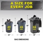 This package contains twenty extra-large 55-gallon Contractor garbage bags you can count on to handle your toughest cleanup jobs. Brute Super Tuff black bags are ideal for everyday projects, DIY remodeling, household & yard cleanup, seasonal storage, and donations. these dependable contractor bags provide superior resistance to punctures and leaks. The extra-large size contains even the biggest messes, and the twist-tie closure prevents items from spilling out when you’re done. Durable packaging with an opening on the sides makes bags easy to store and dispense. When your project demands a professional-strength partner, you can rely on Brute. This package of extra-large Brute Super Tuff Contractor Bags contains one 20-count roll of 55-gallon heavy duty trash bags Extra-thick 2.0 mil gauge delivers professional-grade strength perfect for DIY remodeling, donations, and everyday projects including household cleanup & yardwork Dependable twist-tie closure makes these large garbage bags a breeze to close and carry Package is easy to store and features an opening on the side for hassle-free bag dispensin