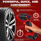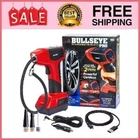 Handheld Portable Tire Inflator For Car Includes: Bullseye Pro electric air compressor for car, motorcycle, and bicycle with 18" inch air hose Rechargeable lithium ion battery 4500 mAh 12V DC cigarette car charge power cord USB-C battery charging cable 2 Nozzle adaptors Inflation needle for basketball, soccer ball, football, volleyball, and more Spare fuse Fabric carry bag Handheld and Cord-Free Convenience: Equipped with a built-in 4500 mAh lithium-ion battery, this portable inflator offers the freedom to inflate tires without needing constant connection to a power source. Dual Power Capability: Includes both a 12V DC cigarette lighter car power cord and a USB-C cable, providing flexible charging and power options and ensuring your inflator is ready whenever and wherever you need it. (The 12V DC power cord does not charge the battery) Quick Inflation System: Inflates standard car tires from 0 PSI to 34 PSI in approximately 5 minutes, and from 24 PSI to 34 PSI in under 2 minutes, with a maximum pressure of 150 PSI, perfect for quick and effective inflation on the go. Intelligent Digital Controls: Features a digital LED pressure gauge for precise pressure settings and monitoring, with auto-shutoff and light alerts to prevent over-inflation and ensure safety. Versatile Inflation Kit: Comes with an 18-inch air hose, two nozzle adapters, an inflation needle for sports equipment, a spare fuse, and a fabric carry bag for easy transportation and storage. Built-In LED Flashlight: Enhances visibility in low-light conditions, making it easier to operate the inflator during nighttime emergencies or in dim environments. Ready for Various Inflatable Needs: Not just for tires—use it for sports balls, inflatable toys, and other equipment with included adapters, ensuring you’re always prepared.