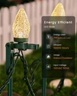 Outdoor Christmas Path Lights- Each of these outdoor Christmas path lights come with 25 LED C9 strawberry bulbs on a 25 feet string, featuring 12-inch light spacing, 7.8-inch pathway markers, and 25 sturdy stakes. The Christmas lights offers a warm white lighting effect for your yard. Simply plug them in and enjoy a festive atmosphere. Ideal for decorating your pathway, garden, courtyard, and holiday decor. Connectable Pathway Lights- These outdoor yard lights are connectable and can be easily installed with the included stakes. They can be connected to up to 72 sets of C9 LED lights, providing a maximum lighting range of 1800 feet for larger area decorations. Use the anchor spike to secure them in the snowfield, turning your winter garden into a blooming wonderland. Waterproof Christmas Decorations- These Christmas stake lights for the yard are UL certified and have passed rain tests, making them suitable for use in various outdoor settings. They are perfect for decorating your home, patio, lawn, garden etc. Simple to Install- making it simple to illuminate your pathways and create a beautiful nighttime ambiance. The durable and flexible cord allows you to drape, coil, or wrap it around structures to achieve your desired lighting effects. Versatile Use: These LED C9 string lights with stakes are perfect for Christmas pathways, driveways, walkways, garden grounds, and courtyards. Use them to separate and illuminate your personal area with bright and gorgeous light, creating a warm and festive atmosphere for your Christmas and holiday celebrations. Warm Festive Decoration: Brighten your outdoor space with the warm glow of 50 LED C9 Christmas Lights. Spanning 50ft(25ft per strand), these charming Christmas path lights create a soft, inviting ambiance for your front door, driveway, and walkway Extendable 72-Strand Design: These C9 walkway lights feature end-to-end connectivity, letting you link up to 72 strands for large displays. The durable green cord, with 6-inch lead wire and 12-inch spacing, is tangle-free and corrosion-resistant, decorating decks, rooflines, fences, and Christmas trees Weatherproof & Durable: The plastic bulbs and sturdy stakes make these C9 string lights waterproof and resilient in all weather conditions. UL-certified for safety, the Christmas stake lights are perfect for both indoor and outdoor use, providing a festive glow throughout the holiday season Energy-Efficient LED Path Lighting: Equipped with energy-saving C9 LED bulbs, these sidewalk lights provide a bright, long-lasting glow while minimizing energy costs. Illuminate your ornaments, garlands, and Christmas trees with 50 warm white LED bulbs Effortless Installation: Easily install these Christmas yard lights using the included 7.8-inch stakes for secure ground placement or hang them on fences, trees, or eaves. The durable, weather-resistant design ensures easy installation and removal after the season