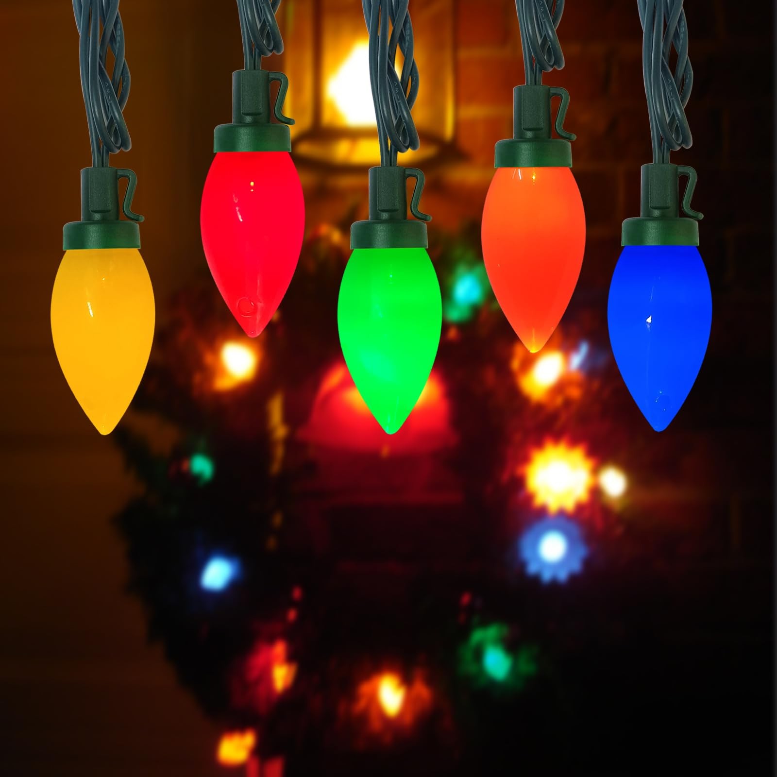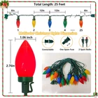 25FT C9 LED Christmas lights with 25 led colored bulbs which are the best choice for decorating Christmas tree and Christmas outdoor decoration. Vintage multicolor Christmas lights emit colorful colors when lit, make the decoration of your home a beautiful scenery in the eyes of neighbors. LED Christmas Lights Outdoor Specifications: Light Source: LED Total Length: 25 Ft Input Voltage: 120V Number of Lights: 25 Material of Bulb Housing: Plastic Spacing Between Lights: 12 Inch Wattage: 2.4 Watt per String Light Spacing from Last Light to Connector: 6 Inch Spacing From Male Plug to First Light: 6 Inch Lighting Color: Red Yellow Blue Green and Orange Connectable: End to End Connectable or Stack the Plug to Connect Features: Plug in, UL Certified, Shatterproof, Waterproof, Energy Efficient Decorate your home, Christmas Tree or patio with these eye-catching Christmas String Lights! Christmas decorations old fashioned Christmas lights are connectable and waterproof, each light is designed with a hook for easy hanging around doorway, window, mantel, patio, indoor or outdoor decoration. Enjoy the strong atmosphere of Christmas brought by outdoor Christmas lights with multicolor. Suitable for Christmas tree, fireplace, wedding, patio, backyard, cafe, camping, pathway, indoor, outdoor Christmas decorations Connectable Christmas String Lights: Colored Christmas lights total length of 25 feet, 6 inch lead with male plug that can be stacked, 12 inch spacing between lights, 6 inch lead with female connector. C9 Christmas lights of each string light is 2.4 watts. Christmas tree lights can be connected up to 90 strings, which can meet the large area decoration of Christmas. Elevate Your Christmas Decorations: Christmas lights combine five colors of red, orange, yellow, green and blue shell with mini led light bulbs to form a unique vintage Christmas lights. Christmas lights multicolor are equipped with 25 colored LED bulbs, 2 spare bulbs and 1 spare fuse. Outdoor Christmas lights are suitable for Christmas theme party and add a hint of mystery to your Christmas decor and cold winter. Energy Saving LED Christmas Lights Outdoor: Multi colored Christmas lights adopt replaceable mini led bulbs, which more brighter and long service life than battery operated Christmas lights. C9 led Christmas lights relative to incandescent string lights are energy saving more than 90%, no need to replace the bulb frequently, provide you with colorful decoration and lighting all the year round. Easy to Install: LED Christmas lights indoor are made of shatterproof plastic, so don't worry about being broken during installation. Multicolor Christmas lights are IP44 waterproof and UL certification, suitable for Christmas indoor and outdoor use. Each Christmas light has a hook which can be hung on quickly or around the Christmas tree, enjoy the joy brought by C9 string lights with your family. Extensive Use Old Fashioned Christmas Lights: Luces de navidad is very suitable for decorating your balcony, eave, backyard, garden, courtyard, wedding, party and Christmas. Rainbow Christmas lights evoke memories of your childhood and make your life full of festivals colors. Retro Christmas lights are excellent for Christmas tree, party, courtyard, camping, patio, roofline, Christmas display and Christmas decorations.