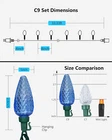 Store New Arrivals Add to Favorite View Feedback Contact C9 LED Christmas String Lights, 33.33Ft 50 LED Outdoor Indoor Decorative Light Strand, Xmas Holiday Lights for House, Christmas Tree, Patio, Party Decoration, Turquoise & Ice Blue, UL Listed Description Item model number I1-50-2-C9 Light Source Type LED Style C9-1 Pack, Turquoise & Ice Blue Power Source Corded Electric Number of Light Sources 50 Control Method Remote Light Direction Adjustable Theme Christmas Batteries Included? No Maximum Compatible Wattage 216 Watts Controller Type Remote Control Batteries Required? No Bulb Shape Size C9 Average Life 50000 Hours Seasons Christmas Package Dimensions 14.53 x 6.89 x 4.09 inches Included Components C9 LED Christmas String Lights, 2 Extra Replacement Fuses Indoor/Outdoor Usage Outdoor Light Color Turquoise & Ice Blue Water Resistance Level Waterproof Item Weight 2.35 pounds Specific Uses Outdoor, Indoor Occasion Christmas Decoration Special Features IP44 Waterproof, End to End Connectable, Super Brightness & Energy Saving Special Feature IP44 Waterproof, End to End Connectable, Super Brightness & Energy Saving Part Number I1-50-2-C9 Color Turquoise & Ice Blue Wattage 4.8 watts Shape Strawberry Voltage 120 Volts Size 1 Pack 【C9 Turquoise & Blue LED Lights】25 count C9 turquoise LED bulbs and 25 count blue bulbs. Illuminate your Christmas display with the vibrant and enchanting glow, creating a unique and eye-catching color combination. 33.3 feet total length, 8” evenly-spaced bulb apart on green wire, 4” lead in length; 【Super Brightness & Energy Saving】Brighter than traditional incandescent string lights, steady on lighting, beautifully bright, emits vivid & brilliant light through the bulb’s core. The LED bulb stays cool when touched, reduces power consumption, and saves money. 【Durable and Waterproof】With quality LEDs and weatherproof construction(IP44 waterproof), Don’t worry about using it in heavy rain and snow. (The plug is not waterproof and you need to do some protection or keep them away from water). The strong LED string lights provide years of high-quality long-lasting lighting, not easy to break apart. 【End to End Connectable】Simply, plug in and go! you can connect up to 45 sets together, and connect easily to your previous lights, end-to-end up to a maximum 216Watts(1.8Amps) total. It can meet your desired length and make your decoration more convenient. Each set comes with 2 extra fuses. 【Wide Application】UL listed. These lights are suitable for indoor and outdoor displays, a timeless classic on your house, and ideal decoration lights for room, roofline, garden, balcony, Christmas tree, party, and holiday decorations. Light up your holiday to enjoy Christmas! 【Customer Satisfaction】We offer 12 MONTH for all products and kind service, providing a 100% satisfaction experience is our main priority to our customers. Feel free to message us through “contact sellers” if products don't meet your expectations. Product Description Make Your Life Bright and Colorful with C9 Led Christmas String Lights 50-Count LED Christmas String lights with green wire use high-brightness LED bulbs, which can add light to your dark environment. The light creates a cheerful atmosphere when it's turned on and instantly brightens your mood. FEATURES: Vivid & Brilliant: C9 faceted bulbs look amazing and stand out in your home, bright enough to light up the outside of your house, creating color combinations and unique color patterns to give your light display a unique look. IP44 Waterproof: Durable for indoor and outdoor use, like home, patio, garden, and balcony, typically you can use these on your house roofline, on your Christmas tree, or wherever decoration lighting is needed, and any decorative project. 50000 Hours Longevity: The LED string lights provide years of high-quality long-lasting lighting, better construction and quality, not easy to break apart, NON-REMOVABLE bulb construction seals out moisture, eliminating corrosion for longer bulb life. Energy Efficient: These light sets use so little power (only 4.8 watts per set), energy-saving LED bulbs, budget-friendly, so you won’t spend as much money on your electrical bill. Allow you to decorate your lighting area with the desired length, making your decoration more convenient. Connected easily to your previous lights! Diamond Faceted 25-count C9 turquoise LED bulbs and 25-count blue bulbs. Beautifully bright, emits vivid & brilliant light through the bulb’s core. Package includes: 1 x 50 led string lights 2 x fuses per set 1 x user’s manual C9 LED String Lights, Multi-colored A set includes 50 LEDs These light sets feature non-removable bulbs, which means you don't have to screw in any light bulbs. Simply, plug them in and they are ready to go! Bulbs CANNOT BE REMOVED or REPLACED. Comes ready to install right out of the box. Also, they will still be cool-touch after lighting for a long time. Specification: Total Length: 33.3ft/set Lead Wire Length: 4inch Bulbs Spacing Length: 8inch Mode: Steady On Expandable: 45 Sets Application: Indoor/Outdoor Light up the upcoming Christmas! IP44 Waterproof Perfect for indoor & outdoor decoration. Lights can be utilized both indoor and outdoor without worry of rainy weather. High Brightness Brilliant, natural-looking glow that fills the bulb with vibrant color. Wide Range of Applications Widely apply for Christmas trees, Christmas, Party, Wedding, Home, Window, Bathroom, Festival, Holiday, Shows, etc. ABOUT US We offer the best prices around on high quality products. Our E-store includes media such as books, movies, music and games while offering electronics, toys, sporting apparel, clothing, tools, general home, garden items and more. SHIPPING We are always working hard to ensure your package arrives as soon as possible. Please understand that some factors like weather, high postal traffic, and the performance of shipping companies are outside of our control. We of