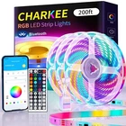 CHARKEE LED Strip Lights 200ft (3 Rolls of 65.6ft). 24V 5050 Ultra Long Super Bright Smart Light Strips with APP Control. 44keys Remote Music Sync Color Changing Led Light for Bedroom, Decoration ✓ Free 60 Day Returns ✓ Free Express Shipping Description: Features: Length: 200ft Ultra Long to decorate bedroom and living room, 3 rolls of 65.6ft cuttable and flexible led strip lights support any DIY combination and shape Control: 44-keys remote provide more options to control your tape lights, Working with your phone's mic, APP give your led lights sense of hearing for music sync dancing Voltage: 24V securate voltage is brighter and stable than 12V led strip lights for such long light strip, 5050 led beam means larger Luminous area than 3528 LEDs Application: Professional APP with more playability is looking forward to your exploration, such as 16 million colors, timer setting, custom scene mode,etc Accessories and services: Includes remote/adapter/user instruction; 1-year manufacturer warranty, sincere service and perfect experience;Using the Add both to Cart" button near the promotion description, receive 1 bag of 20 LED Lights connectors free Product Details: Color: Multicolor Brand: CHARKEE Indoor/Outdoor Usage: Indoor Special Feature: Remote Controlled, Energy Efficient, Adjustable, Linkable Light Source Type: LED Power Source: wired_electric, Corded Electric Light Color: Multicolor Theme: Fantasy Occasion: Christmas Style: Modern Package Dimensions : 5.91 x 5.51 x 2.44 inches; 14.07 ounces Item model number : ACCF0232044R-JAUS0-V1 Batteries : 1 CR2 batteries required. Date First Available : November 15, 2022 Manufacturer : CHARKEE Customer Reviews: 4.3 4.3 out of 5 stars 3,510 ratings Color: Multicolor Brand: CHARKEE Indoor/Outdoor Usage: Indoor Special Feature: Remote Controlled, Energy Efficient, Adjustable, Linkable Light Source Type: LED Power Source: wired_electric, Corded Electric Light Color: Multicolor Theme: Fantasy Occasion: Christmas Style: Modern Material: Plastic Controller Type: App Control Connectivity Protocol: Bluetooth, Remote Control Number of Light Sources: 720 Voltage: 24 Volts Wattage: 24 watts Included Components: remote/adapter/user instruction, sincere service and perfect experience, 1-year manufacturer warranty Number of Items: 1 Control Method: App Wireless Communication Technology: Bluetooth, Wi-Fi Number of Batteries: 1 CR2 batteries required. Manufacturer: CHARKEE Part Number: CH55NW2320B Item Weight: 14 ounces Package Dimensions: 5.91 x 5.51 x 2.44 inches Item model number: ACCF0232044R-JAUS0-V1 Batteries: 1 CR2 batteries required. Specific Uses: Christmas, Party,Homecoming, Birthday,Wedding Special Features: Remote Controlled, Energy Efficient, Adjustable, Linkable Plug Format: A- US style Batteries Included?: No Batteries Required?: No Bulb Features: 2-way switching Date First Available: November 15, 2022