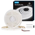 Super Bright and Linear: COB led strip lights is new and upgrade technology that compared with traditional SMD led strip, total 2400pcs(16.4ft/5m) led chips on pcb board, high density of leds and uniform light with widely emitting angle 180° it has, the effect of COB led rope lighting looks more linear and dot-free. Waterproof IP67: This cob LED strip is encased in a silicone tube. It is completely waterproof and weatherproof, dustproof, available for indoor and outdoor use. It's safer that the LEDs can't be touched directly than non-waterproof. And it still has 180° viewing angle. High Light Efficiency and CRI: 100-110 LM/W luminous efficiency and high CRI more than 92Ra are good for energy saving and eyes friendly,not only used for home decoration, it can used for Auxiliary lighting and night atmosphere creating Cuttable & Flexible: The COB led strip light is special soft and flexible that easy to bend any shape as requied, cuttable designed at every 50mm(1.96in) segment and re-joint, which suitable for various complex and different length needed applications Easy Installation & Sticky Tape: With strong self-adhesive tape, the COB led strip is easily installed on clean and dry surface without any else tools, 10mm width is suitable for many different applications. Widely Use & Durable: COB led strip light adopt up to 50,000 hours lifespan led chips, with obvious advantage, and durable quality, it is widely used for kitchen, bedroom, cabinet, mirror, TV background, shelf, library, wardrobe, commercial mall, office lighting etc.