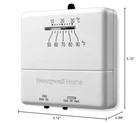 This Heat and Cool Thermostat has low voltage controls with a snap-action switch for heating systems. It comes with mounting hardware (wall plate included) and does not require leveling. This manual thermostat controls heating in your home simply and effectively. The product is easy to use The product is highly durable and handle The product is manufactured in United States. Simply and effectively control the temperature in your home with a Honeywell Manual Economy Thermostat. This non-programmable thermostat controls standard HVAC systems with a quick snap-action switch and a mercury-free sensor. About Honeywell When it comes to applying leading-edge technology to solve the world's problems, few companies can rival Honeywell's long record of achievement. It began in the 1880s. Honeywell pioneered a combination of products that gave birth to a new field of technology - automation and control. Honeywell has never looked back. Across twelve decades, Honeywell has been building a better world and remains the world's leader in automation and control solutions. More than 100 million homes and well over 5 million commercial, industrial and institutional buildings around the world depend on Honeywell products, components and systems deliver control, comfort, safety and security. Non-programmable manual thermostat. Control gas or oil heating and cooling equipment. Bimetal temperature sensor. Snap-acting switch. Dimensions: 6.2W x 2.8D x 9H in..