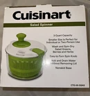 *This Cuisinart Salad Spinner is new in the original packaging. The box is very slightly dented on one lower corner from normal shelf wear. *From a smoke-free, pet-free home. *Any questions, concerns, or problems, please don’t hesitate to contact me. 😊Thanks! FEATURES: •••This Cuisinart Salad Spinner’s smaller size (3 quart) is perfect for individual or two-person use. •••Wash and spin-dry salad greens, berries, and herbs. •••Has an easy-to-turn spin knob. •••Can add and drain water without removing the lid. •••Has a non-skid base.