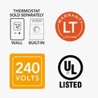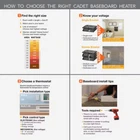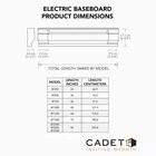 Store New Arrivals Add to Favorite View Feedback Contact Cadet Baseboard Heater 96" 240-208V 2000-1,500W White Description Amperage (A) 8.3 A Baseboard Heating Type Electric Color White Color Family Whites Heat rating (BTU/hour) 6824 Btu/h Heating Product Type Baseboard Heating Technology Type Convection Hydronic No Pack Size 1 Power/Fuel Type Electric Product Weight (lb) 13.75 lb Returnable 90-Day Thermostat No Vented No Voltage (V) 240 V Wattage (W) 2000/1500 W Certifications and Listings UL Listed Manufacturer Warranty Lifetime Product Depth (in) 2.5 in Product Height (in) 7 in Product Length (in) 96 in Electric baseboard heater quietly warms up to 350 sq. ft. space Simple-to-use, twist-dial T522W wall thermostat also included Easy, efficient installation with universal wiring at each end A Cadet electric baseboard heater with a T522W wall thermostat included is a simple and economical way to add quiet, convection heat wherever it's needed in your home. This white 96-inch heater is an industry-standard size making it ideal for replacement or new construction, and is designed for easy installation with pre-punched mounting marks and wiring at both ends. Be sure to choose the correct heater size for your room. On the chart below, find the area size you want to heat and then select the corresponding wattage. Not a plug-in model, this electric baseboard heater and wall thermostat combination require a hard-wire installation which is a permanent, safe and reliable heating solution Requires 240-Volt or 208-Volt wiring (double breaker). Before you purchase, confirm your power supply voltage (check your breaker, use a voltmeter, or refer to your old heater’s label if replacing) Choose the correct heater size for your space. Simply match your area to the corresponding wattage (see chart below) Large 2,000-Watt heater effectively warms up to 250 sq. ft. (medium to large-sized rooms) 2,000-Watt output with 240-Volt wiring (8.3 Amps, 6,825 BTUs) or 1,500-Watt output with 208-Volt wiring (7.2 Amps, 5,120 BTUs) Place baseboard directly on the floor, mount to wall and maintain 12 in. clearance from furniture, drapes, etc. Do not install below electrical outlets Double pole (4-wire) mechanical thermostat controls up to 5280-Watt at 240-Volt or 2640-Watt at 120-Volt Thermostat setpoint range: 40°F to 80°F (5°C to 27°C), comfort range: 3° to 6° Thermostat controls up to 5280-Watt at 240-Volt or 2640-Watt at 120-Volt A high-temperature safety device switches heater off if normal operating temperatures are exceeded UL listed in the US for safety compliance Lifetime limited warranty Thermostat comfort range: 3° to 6° 22 Amp thermostat Match your heater to the voltage at connection: confirm if you have a 120-Volt or 240-Volt power supply before purchase; you can check your breaker, use a volt meter, or look at the voltage on your old heaters label if replacing ABOUT US We offer the best prices around on high quality products. Our E-store includes tools, general home, garden items and more. SHIPPING We are always working hard to ensure your package arrives as soon as possible. Please understand that some factors like weather, high postal traffic, and the performance of shipping companies are outside of our control. We offer free shipping to the lower 48 states and ship within 4 business days of payment, usually sooner. We do not accept P.O. Boxes. Please provide a physical address. RETURNS We offer a 30-Day Return Policy on items which you are not completely satisfied with. You have the option for a full-refund or an exchange of the item. No returns are available on items shipped outside of the USA. PAYMENT We accept PayPal. CONTACT US This page content is yet to come Please ad us to your favorite seller and visit again later Thank You CUSTOMER SATISFACTION We try our very best to make sure every customer is completely satisfied. If there's a problem, message us! We're happy to help. WE ACCEPT Copyright © 2017 AutoDs. | All Rights Reserved