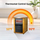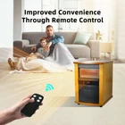 3 Heat Settings: Enjoy customizable warmth with three heat settings - 750w, 1,500w, and ECO mode, maintaining a constant temperature of 68°F 4 Infrared Quartz Elements: Equipped with four powerful infrared quartz elements, the space heater delivers efficient and even heat distribution Safety Protection: The space heater comes with multiple safety features, including overheat and tip-over safety shutoff, as well as cool-touch exterior cabinet and child safety lock Convenient Controls: Easily manage your heating preferences with the thermostat control system. The remote control allows you to adjust the temperature and settings from distance User-Friendly Design: The extra-large LED display provides clear visibility of the current settings, making it easy to monitor and adjust. The 12-hour programmable timer allows you to set the desired heating duration in advance