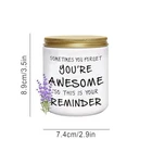 Return Policy Fast Delivery Trusted seller Candles Gifts for Women Inspirational Unique Valentines Day Christmas Birthday Gift for Her Sister Best Friend Wife Girlfriend Stocking Stuffers for Women Lavender Scented Candle Product Description 100% soy wax, clean, safe and lasting burning for about 50 hours. High content of lavender fragrance, with calming and relaxing characteristics, can reduce stress, anxiety and depression. The best gift idea, a meaningful quote sometimes you forget your awesome gifts for Women It is an ideal aromatherapy candle or relaxation candle, which is used for yoga, reading, meditation and sleeping. It is also an ideal bathroom candle. We will try our best to give you the best products, if you have any complaints, please contact customer service for assistance Shipping Returns Payment Shipping Shipping is FREE to all addresses other than APO/PO boxes in the lower 48 states. All our stock ships from US-based warehouses. Shipped via USPS or UPS (depending on location and package weight) Unless stated otherwise, all orders will ship within 24-72 hours of your payment being processed. Check our feedback to see the great reviews of FAST shipping we offer. Returns Seller does not accept returns Payment We currently accept payment via eBay managed payments only. Once payment is cleared, we will dispatch your shipment within 1-3 business days. Please refer to the "Shipping" tab for more information regarding shipping speed to your destination.